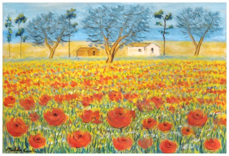 MICHELE CASCELLA Ortona 1892 – Milano 1989 Campo di papaveri Olio su tela 35 x 50. Firma in b. a s.; sul verso scritta di autentica e firma dell’artista. Autentica dell’autore su foto + num. Archivio Opere Cascella, Torcular, Milano. Certificato di autenticità e provenienza Telemarket, Roncadelle.