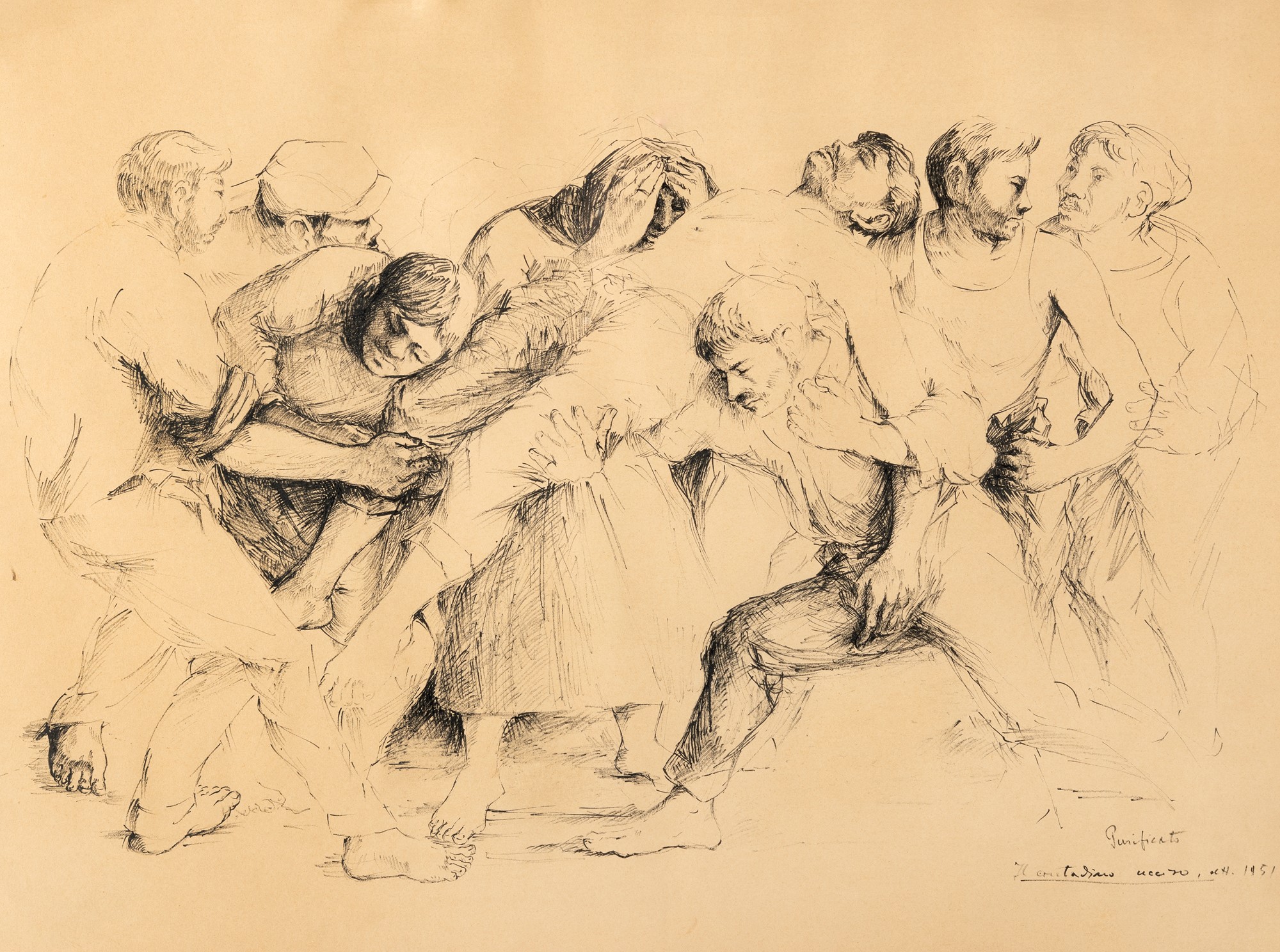 Firmato in basso a destra: Purificato, Il contadino ucciso, set. 1951
