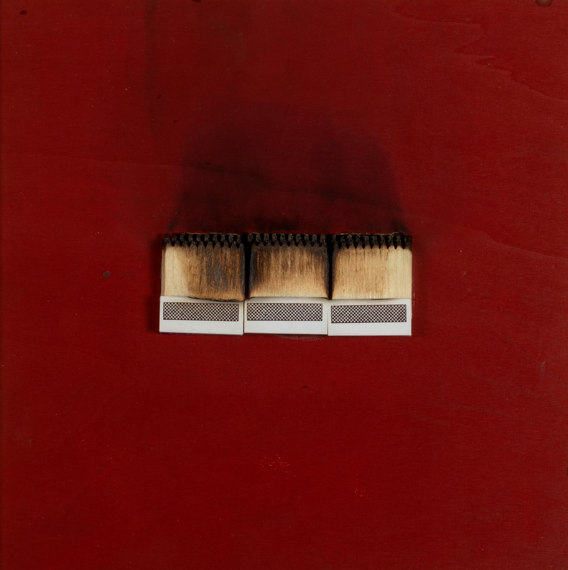 tecnica mista e fiammiferi bruciati su tavola