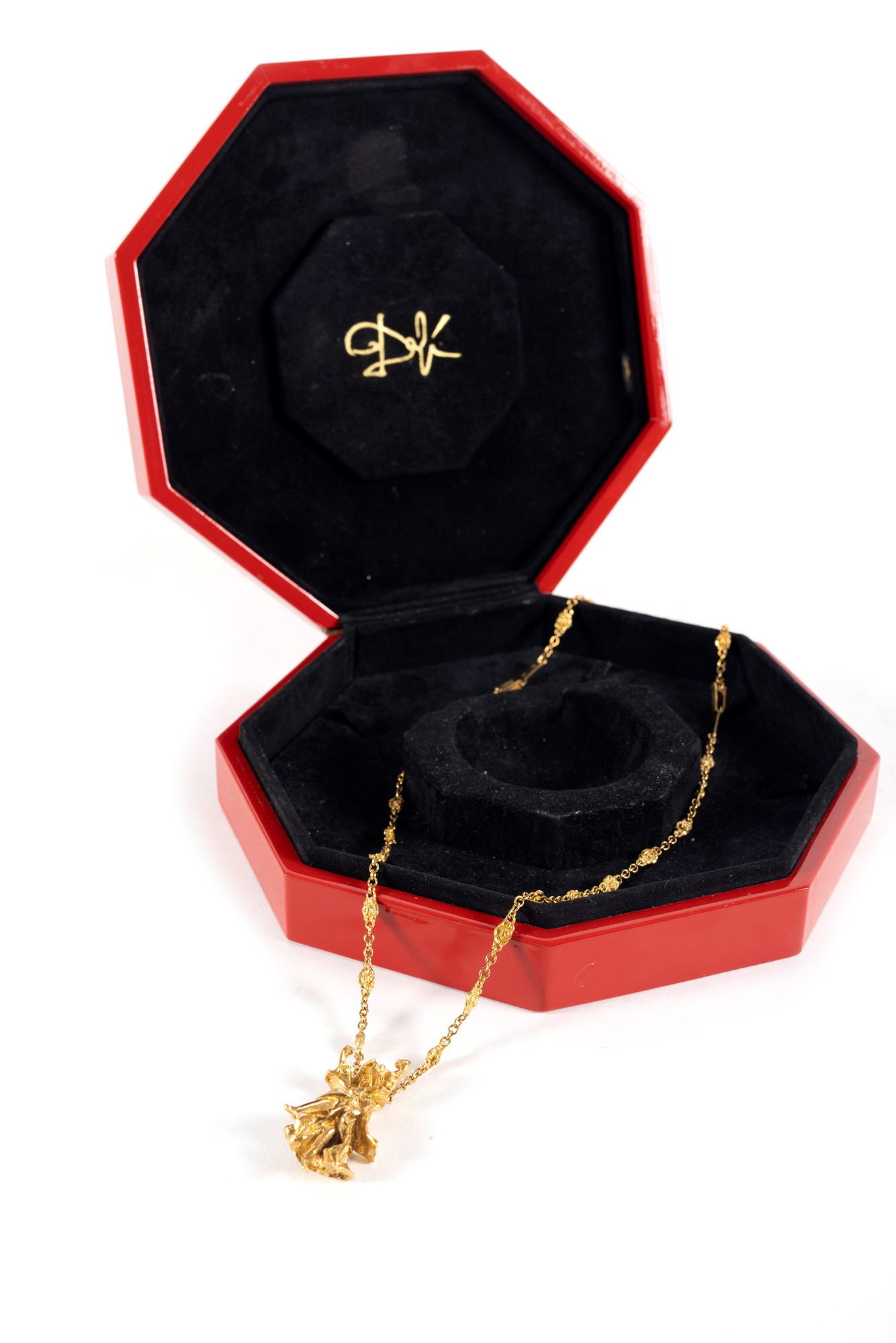 collana in oro 18 ct con pendente; catena decorata con elementi floreali