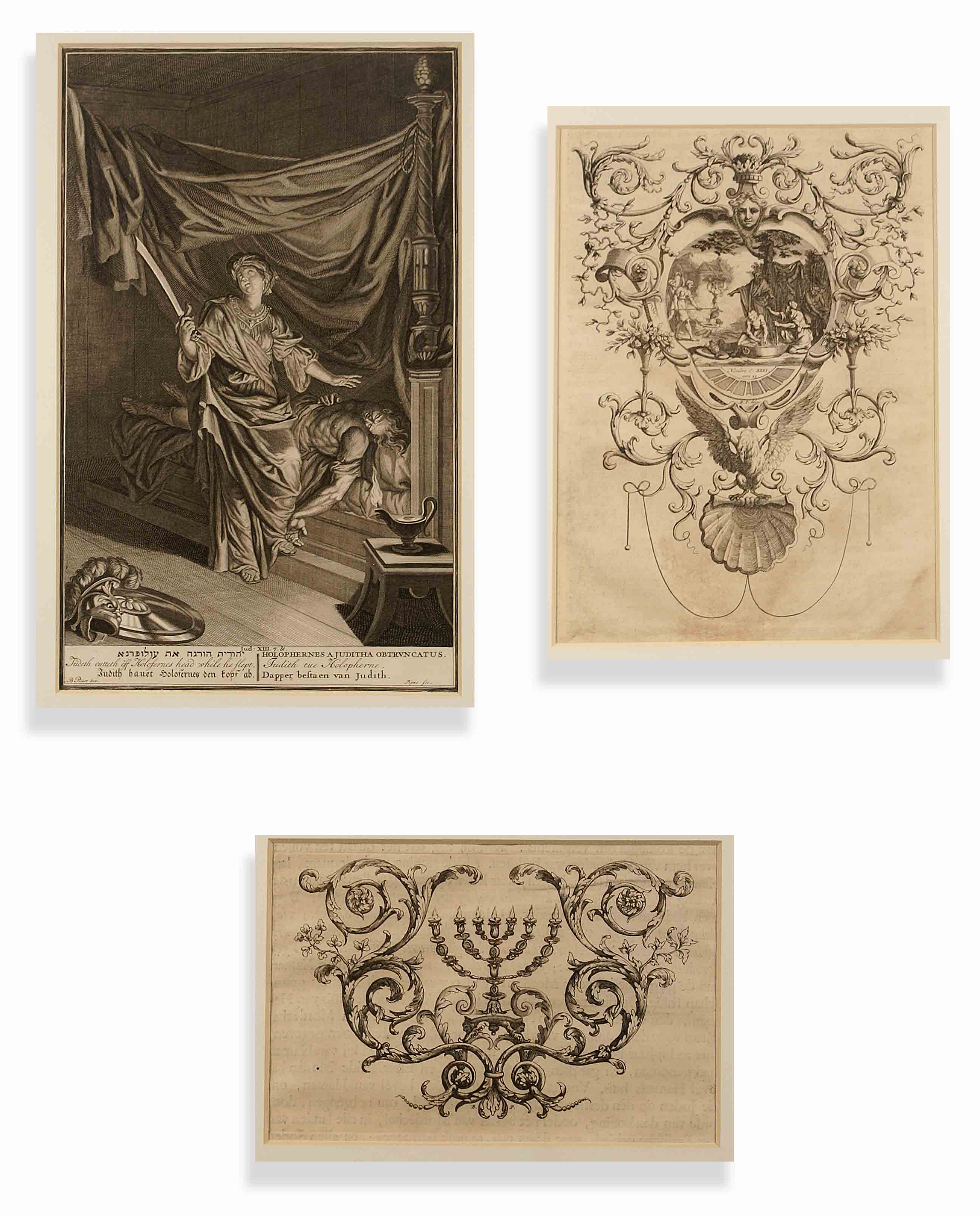 Scuola francese del XVIII secolo, tre acqueforti, soggetti e misure diverse.