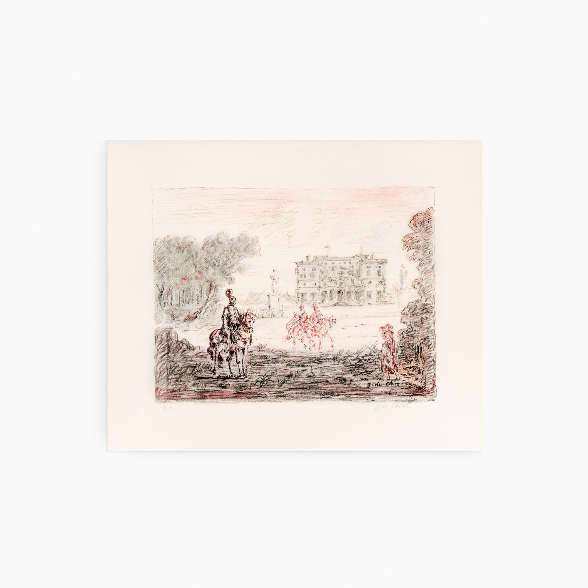 L'opera fa parte della serie di sei litografie intitolata "Cavalli e ville" edita a Roma nel 1954 da Carlo Bestetti.
