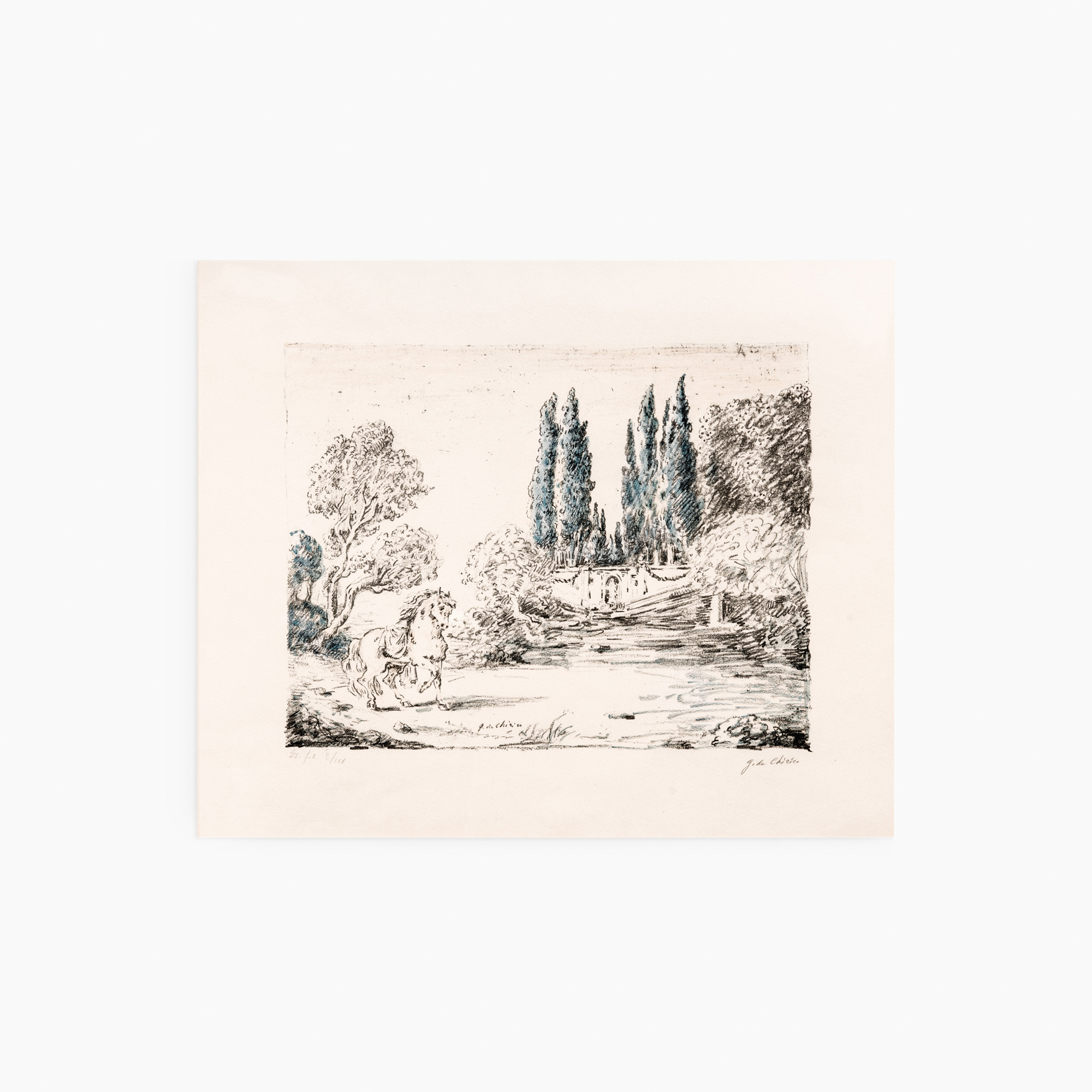 L'opera fa parte della serie di sei litografie intitolata "Cavalli e ville" edita a Roma nel 1954 da Carlo Bestetti.