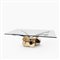 Il piano in vetro misura 160x80 cm; la scultura in bronzo misura H 50x110x50 cm.