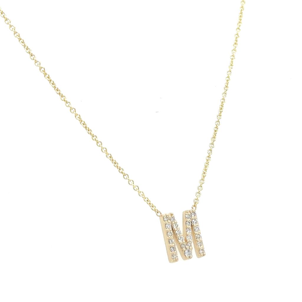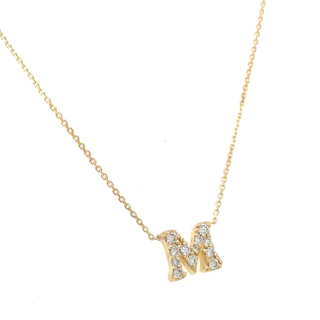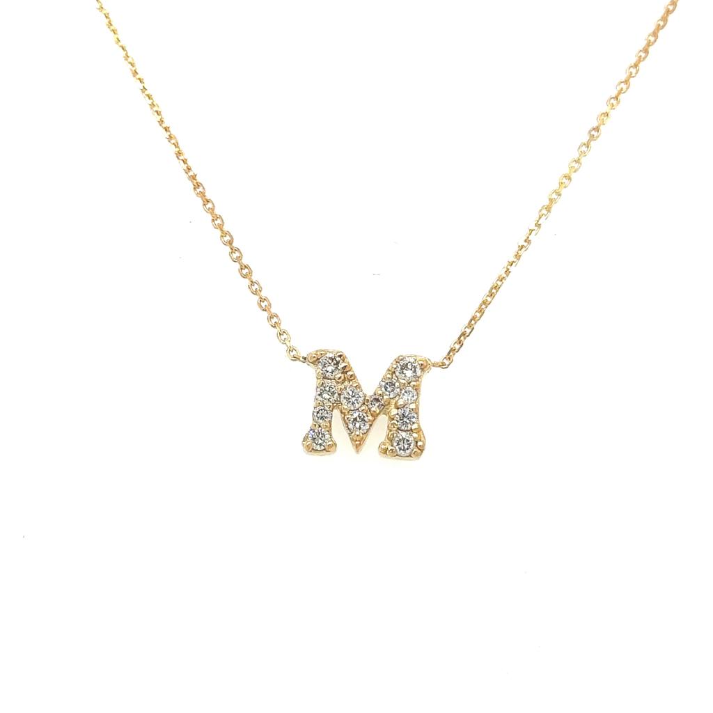 GIROCOLLO IN ORO GIALLO 14K 2.80 GR CON LETTERA M CON DIAMANTI PER 0.28 CT...
