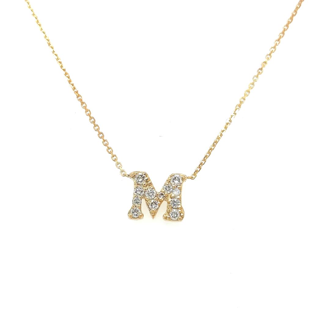 GIROCOLLO IN ORO GIALLO 14K 2.80 GR CON LETTERA M CON DIAMANTI PER 0.28 CT COLORE F-G PUREZZA VS 42CM CERTIFICATO ID – PND-M1