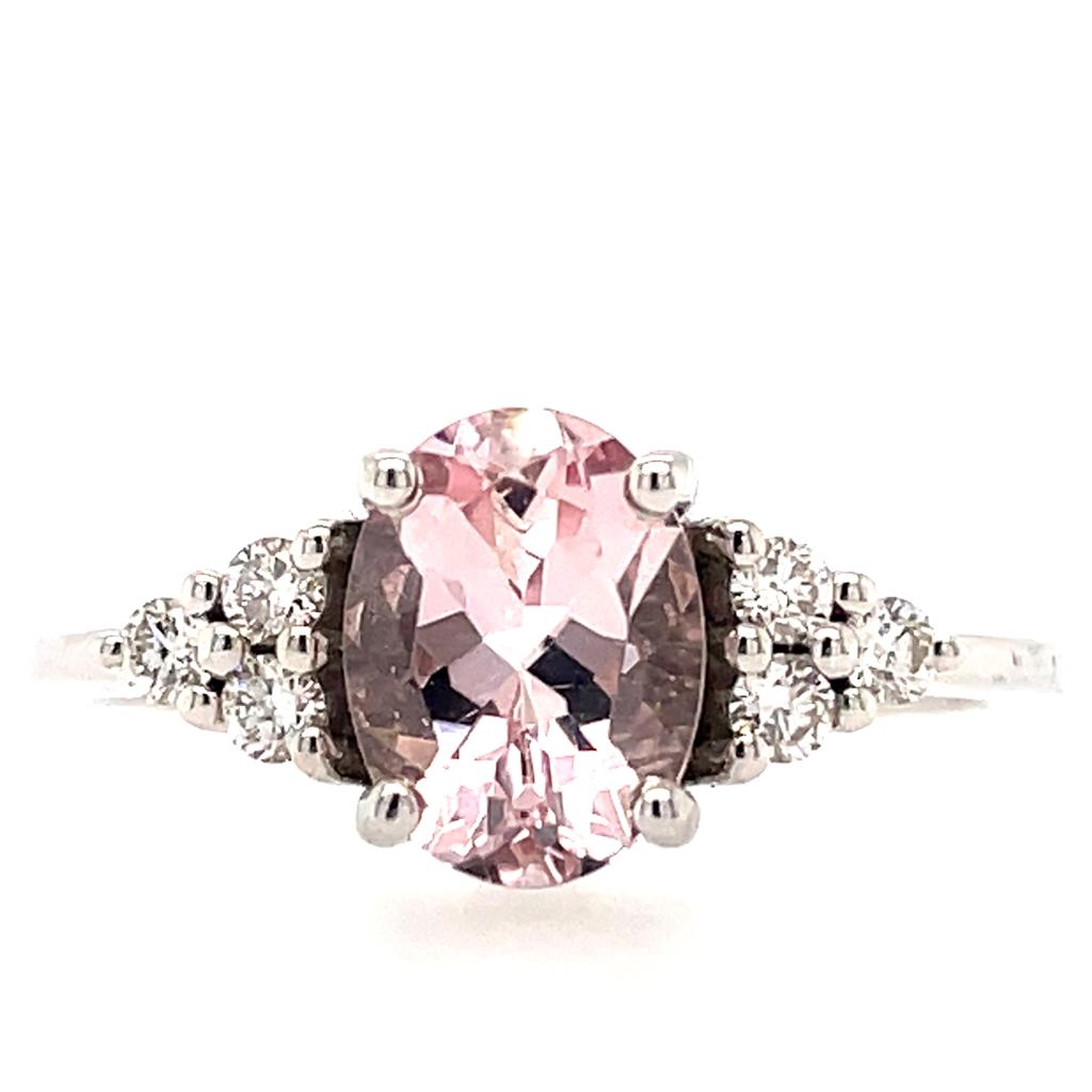 ANELLO IN ORO BIANCO 14K 2.94 GR MORGANITE 1.06 CT E DIAMANTI CT 0.15 TOTALI CTF/VS - A323R