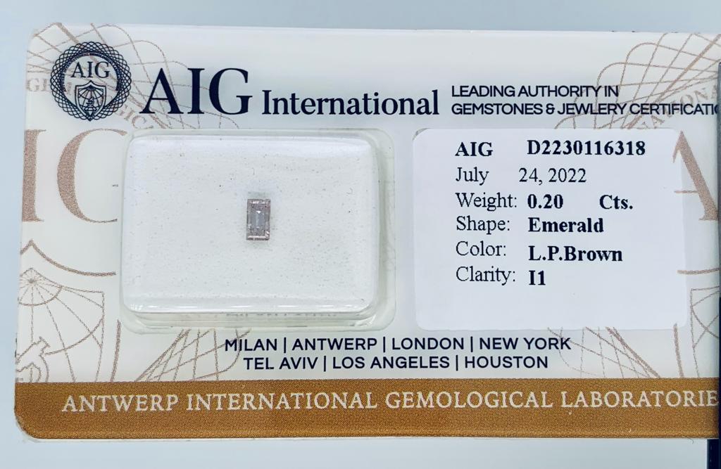 DIAMANTE 0,2 CT ROSA MARRONE CHIARO - I1 - TAGLIO SMERALDO - CERTIFICATO AIG - AM20705-27