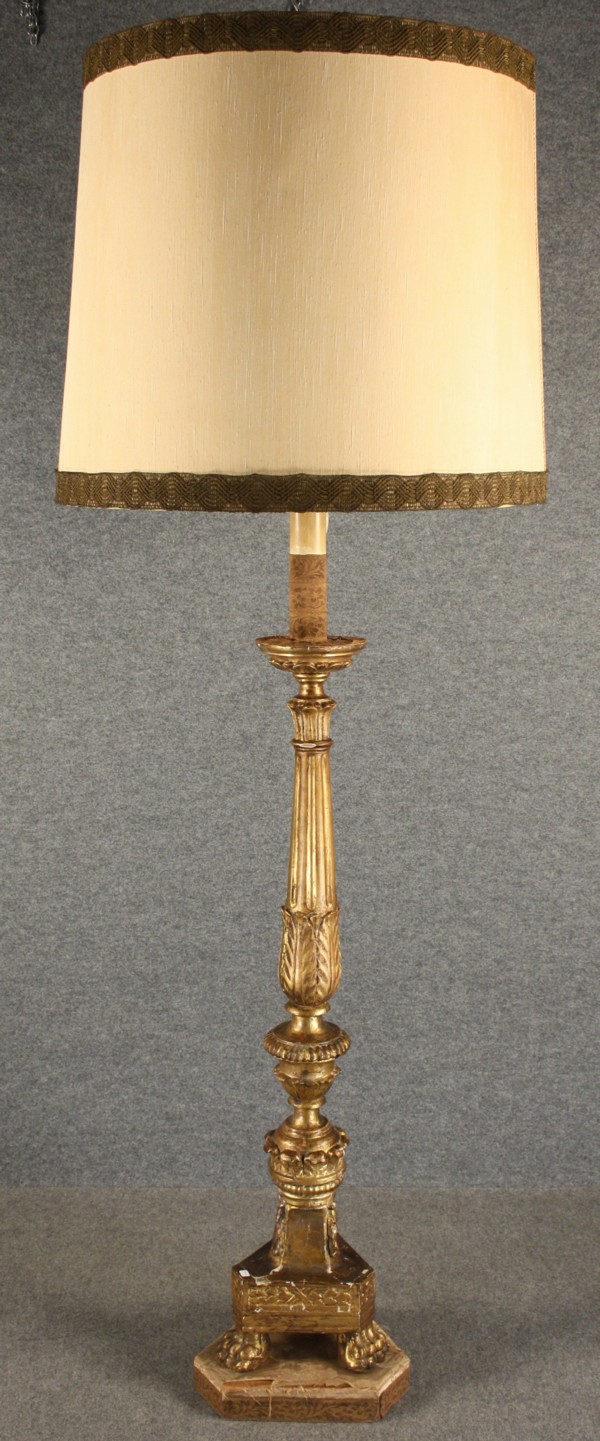 Esemplare: 8 di 30. Torciera a lampada in legno dorato. XIX secolo. Difetti....