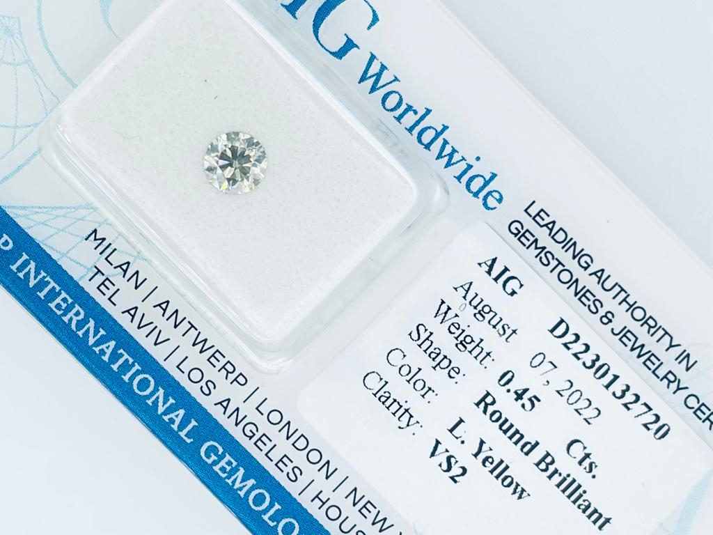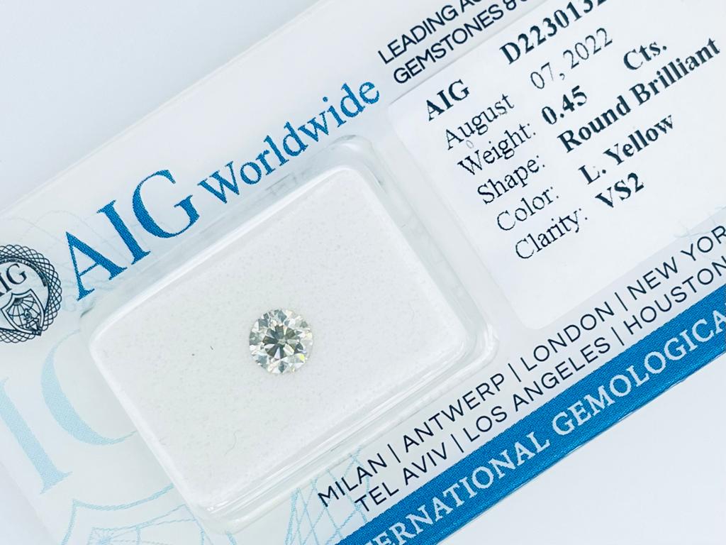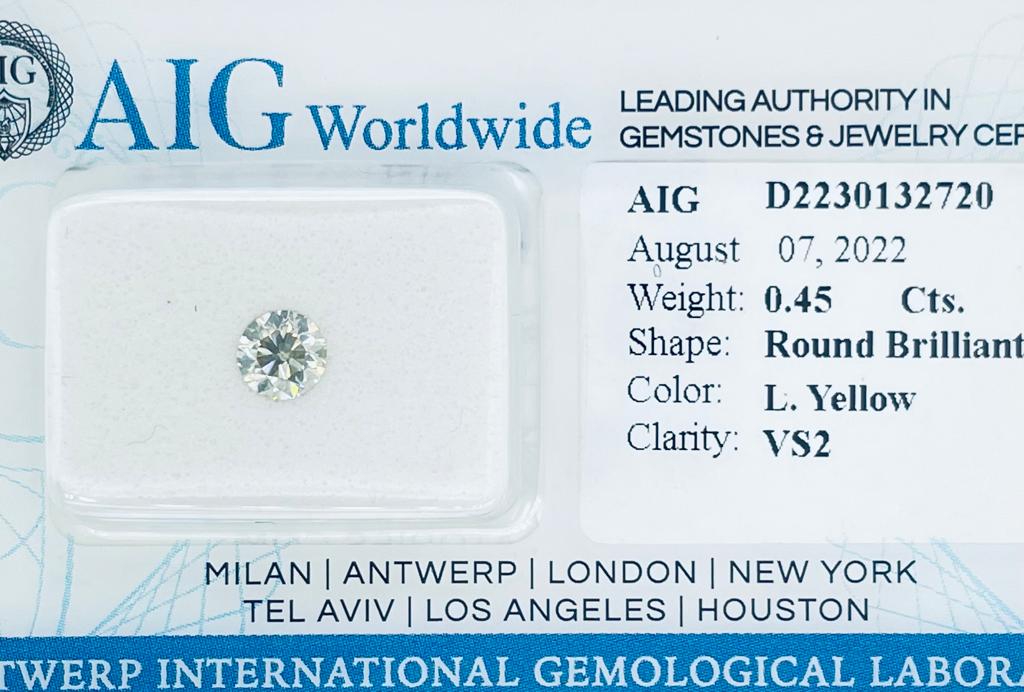 DIAMANTE 0,45 CT GIALLO CHIARO PUREZZA VS2 - TAGLIO BRILLANTE - CERTIFICATO AIG - C20807-22