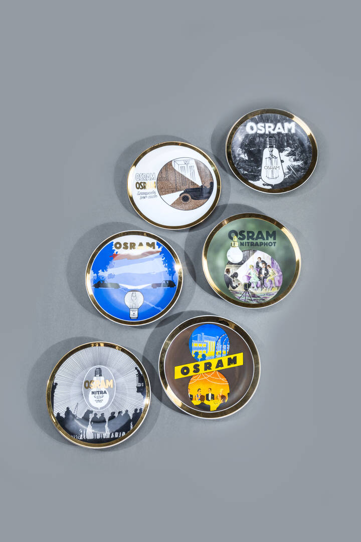 PIERO FORNASETTI<BR>Milano 1913 - 1988<BR>Sei piatti della serie Lampade d'epoca