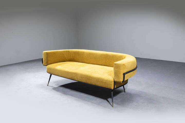 Tubolare metallico verniciato, particolari in ottone e tessuto imbottito.