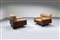 Coppia di poltrone con struttura in legno e imbottitura rivestita in pelle.