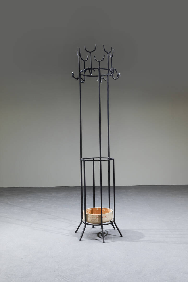 Appendiabiti in metallo verniciato con smalto raggrinzante e ciotola in terracotta smaltata.
