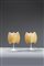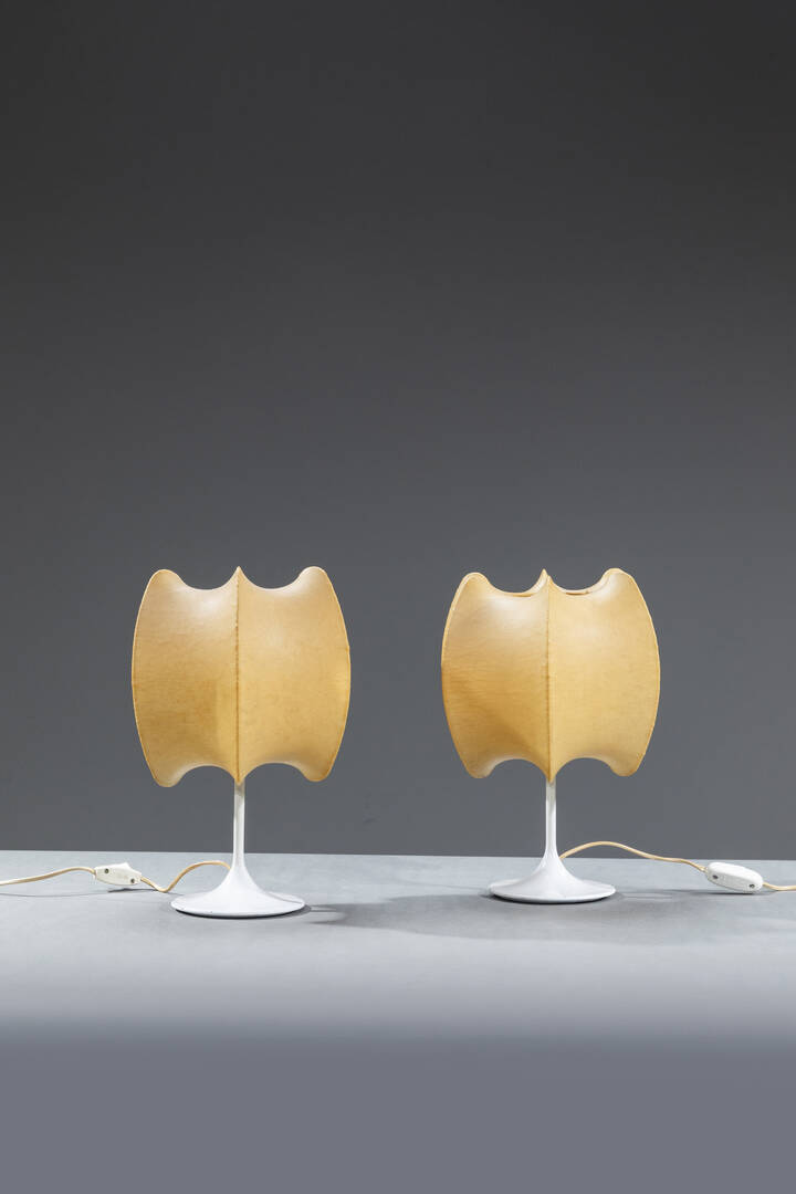 Coppia di lampade da tavolo con struttura in metallo laccato e paralume in coccon.