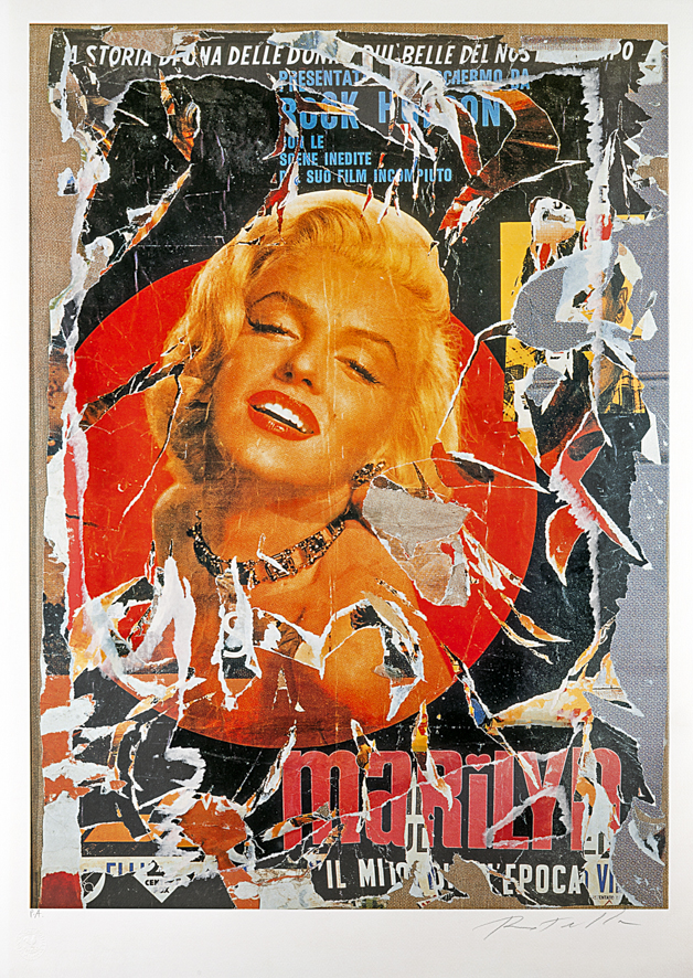 Rotella Mimmo Catanzaro 1918 - Milano 2006 Marilyn la sfida Multiplo e decollage su carta 70 x 100 cm Esemplare P.A. Firmato in basso a destra Opera pubblicata su catalogo: MIMMO ROTELLA “Multipli e dècollages” a cura Silvana Editoriale