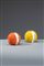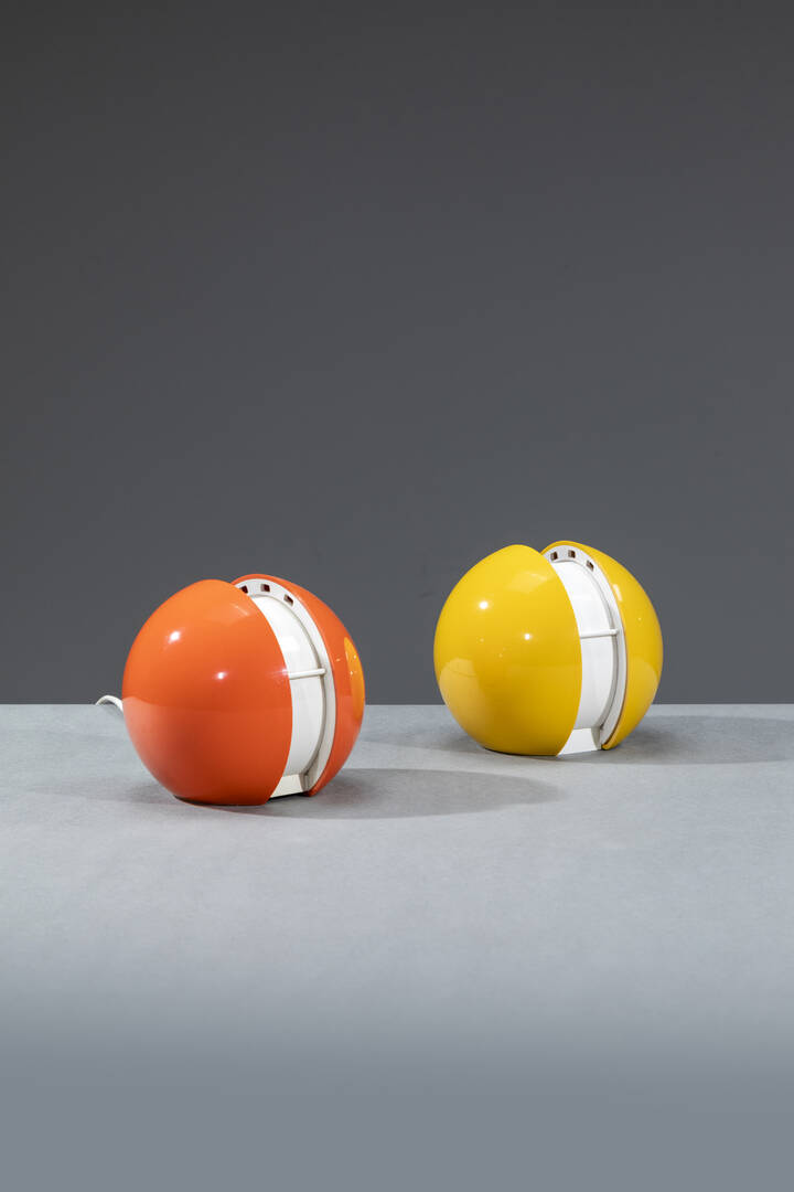 Coppia di lampade da tavolo Gea in resina Abs di color giallo e arancio.