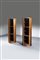 Coppia di mobili contenitori in legno di noce con ante scorrevoli.