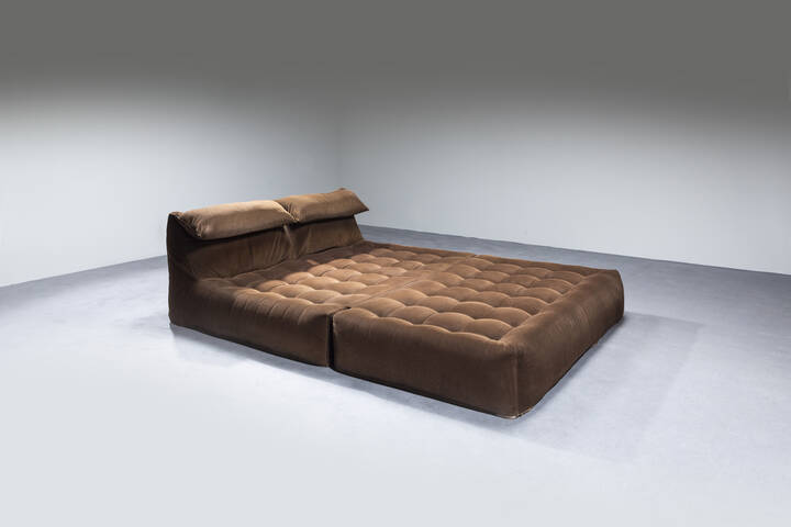 Letto matrimoniale serie Le bambole imbottito in velluto a coste.