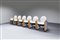 Dodici poltrone con struttura in legno, sedute e schienali imbottiti rivestiti in tessuto.