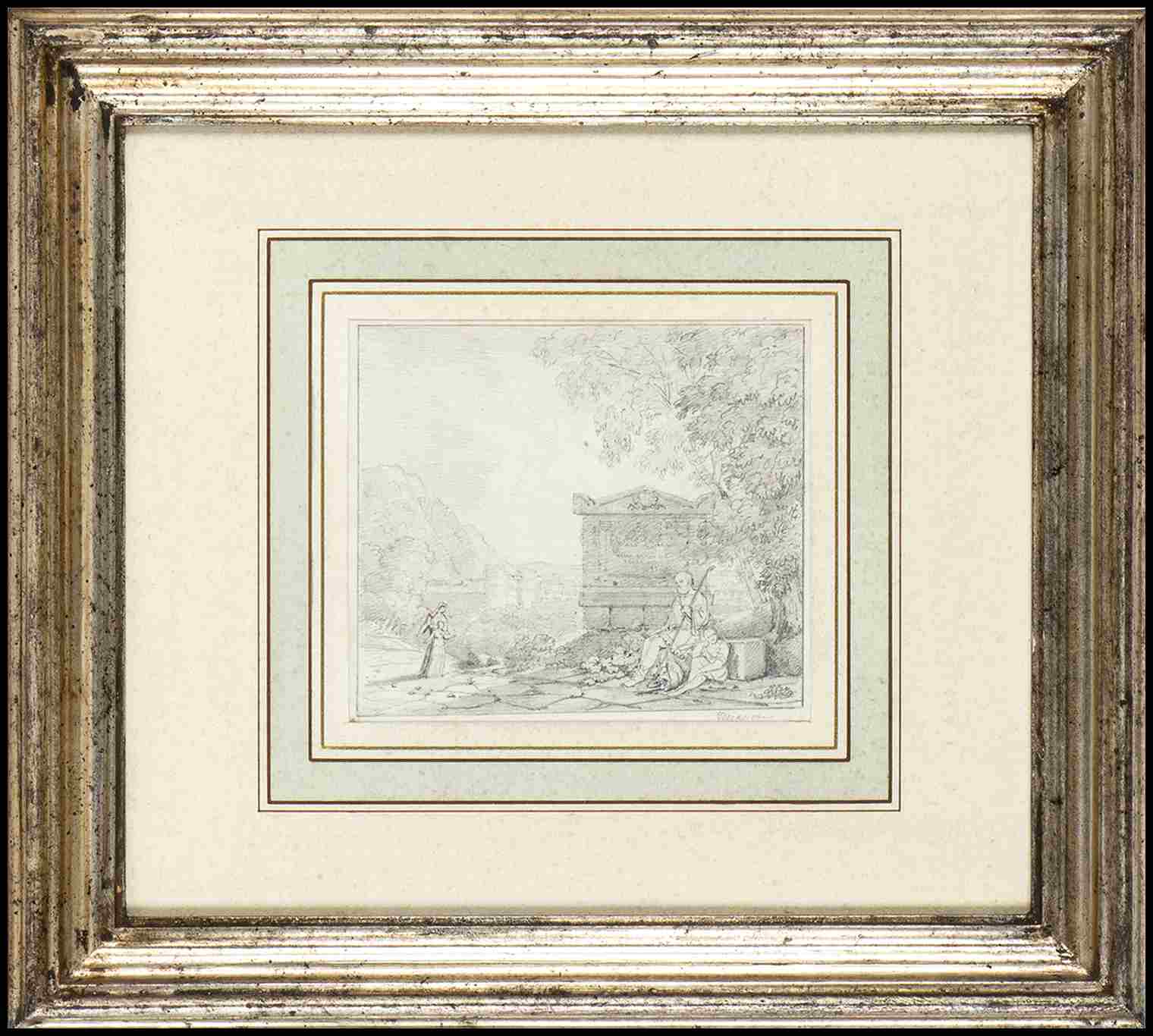 Matita su carta vergellata, cm. 14x15,8. Con cornice