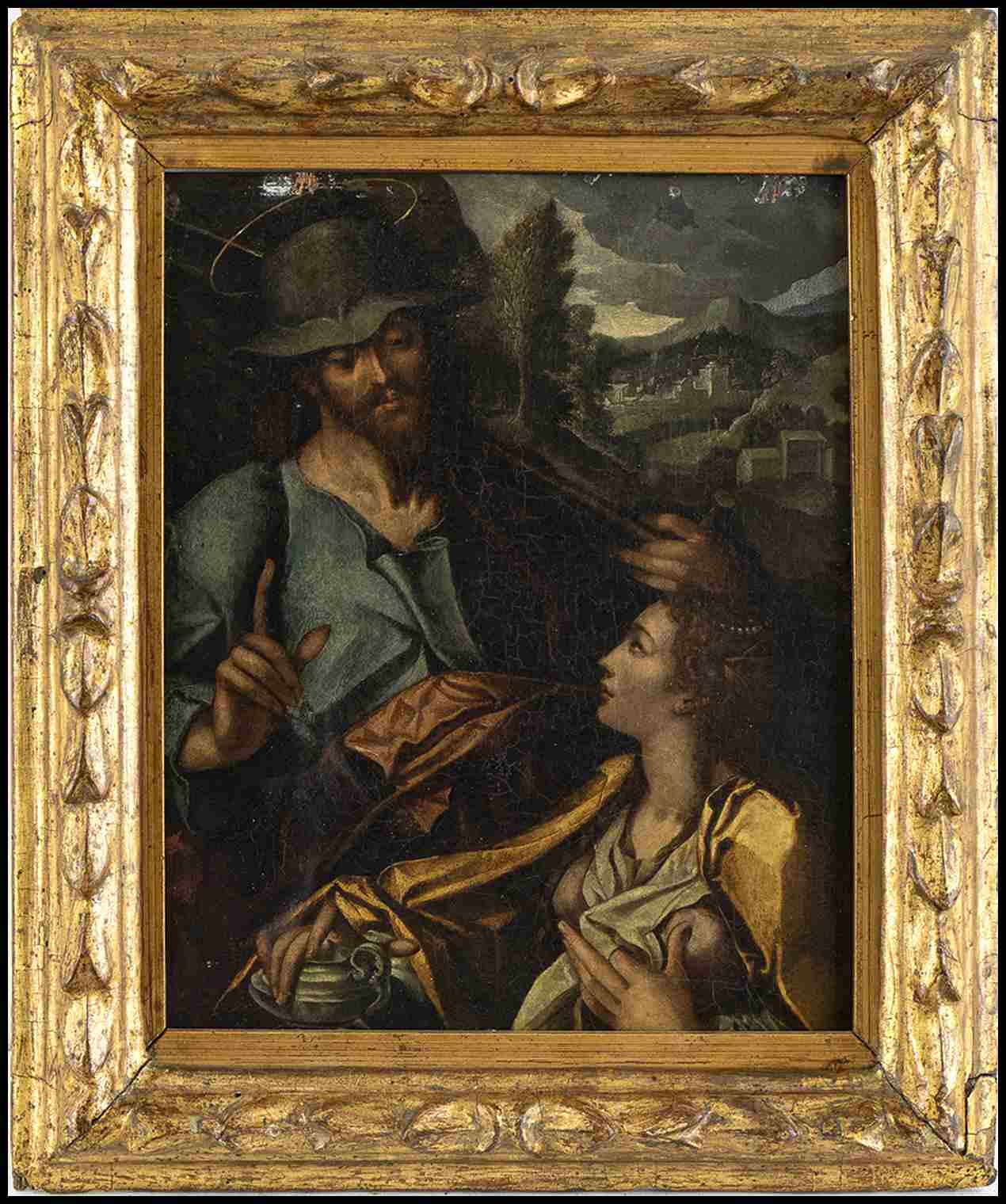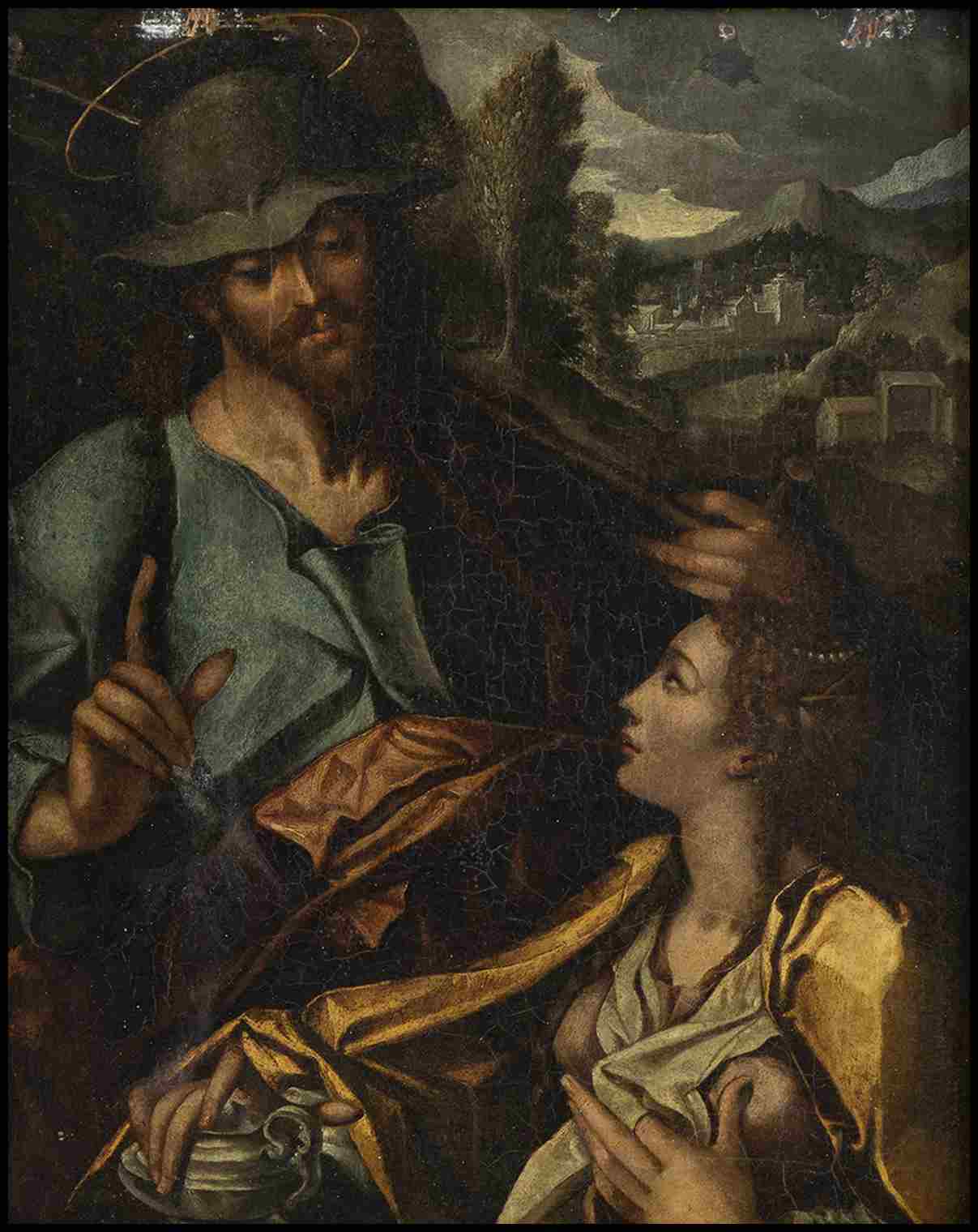 La composizione fu divulgata e resa celebre dall'incisione che ne trasse Johannes Sadeler I. Il nostro dipinto su rame dipende direttamente da quest'ultima e per qualità e stile si direbbe avvicinabile al fiammingo Anthonis Santvoort, come suggerisce il rame dello stesso soggetto conservato presso la Galleria del Castello di Praga.