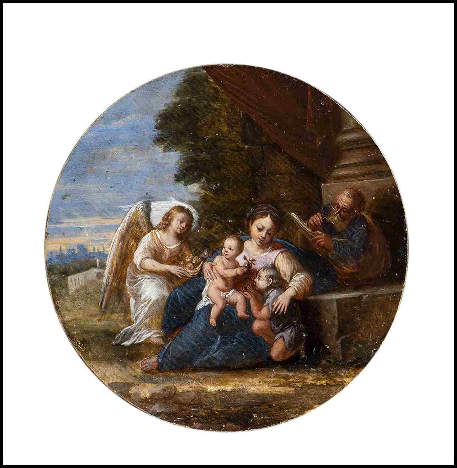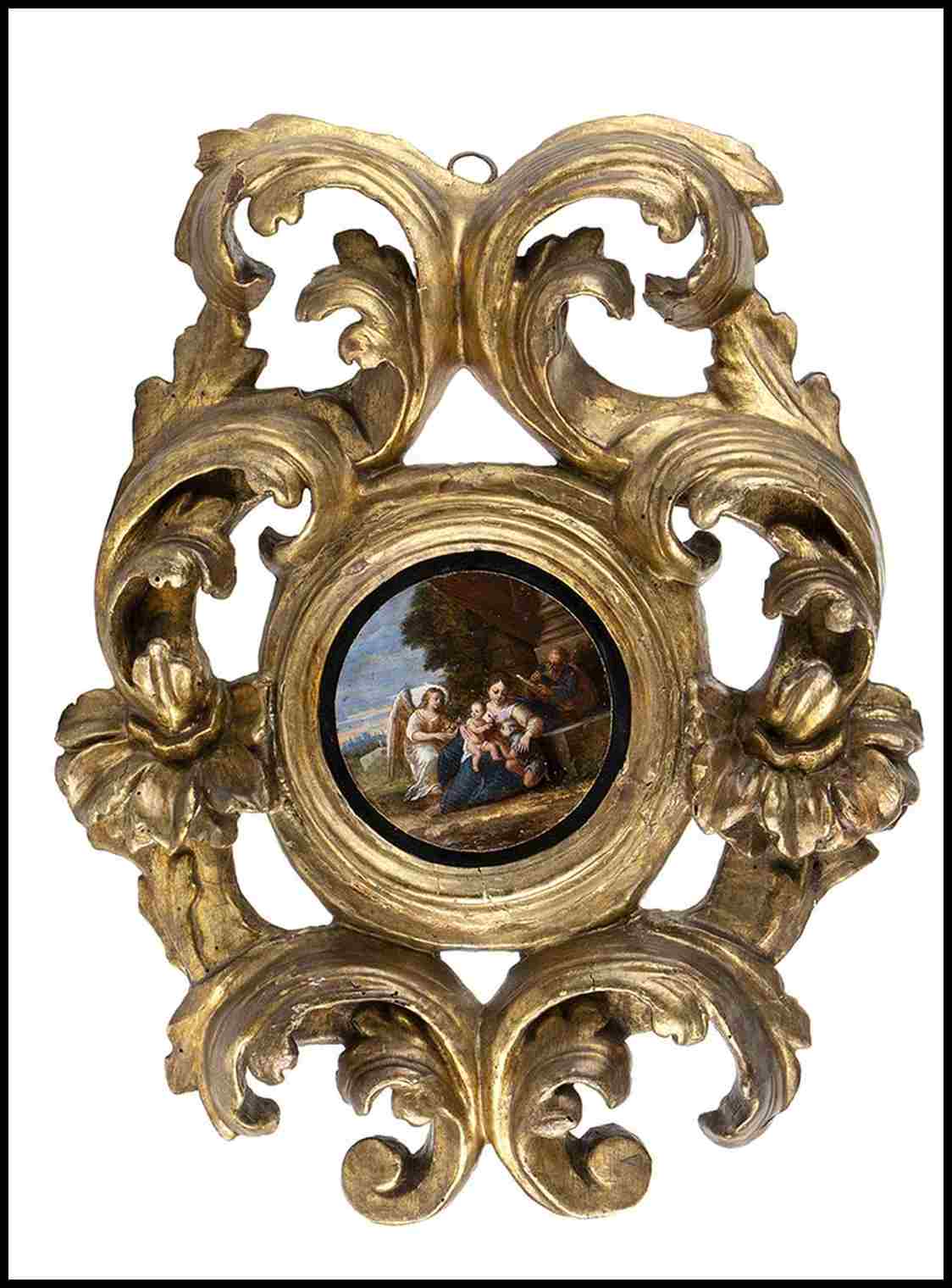 Olio su tavola, Ø cm. 17,5. Con importante cornice antica.