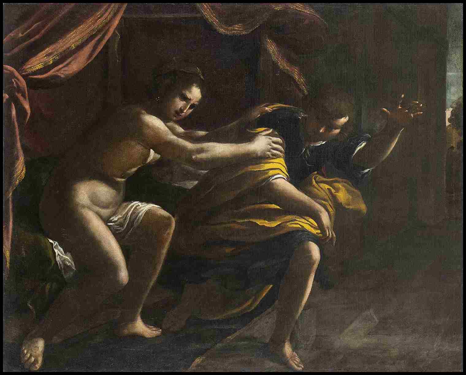 Il dipinto si concentra sul momento cruciale della narrazione del Genesi (19, 7-20) in cui la moglie di Putifarre, capo delle guardie del faraone, cerca invano di sedurre Giuseppe, figlio di Giacobbe e Rachele, che era stato acquistato come schiavo da Putifarre. La resistenza di Giuseppe fa infuriare la donna che per vendicare l'umiliazione subita lo accusa di avere attentato alla sua virtù e lo fa arrestare. La nostra tela, ricca di stimoli figurativi bolognesi e veneti, si qualifica subito come un notevole prodotto della scuola ferrarese di primo Seicento, in quella felice congiuntura che, oltre al capofila Scarsellino, coinvolge un gruppo di artisti di alto livello, oggi in piena fase di rivalutazione critica, come Carlo Bononi, Giuseppe Caletti e Camillo Ricci, allievo prediletto dello Scarsellino.