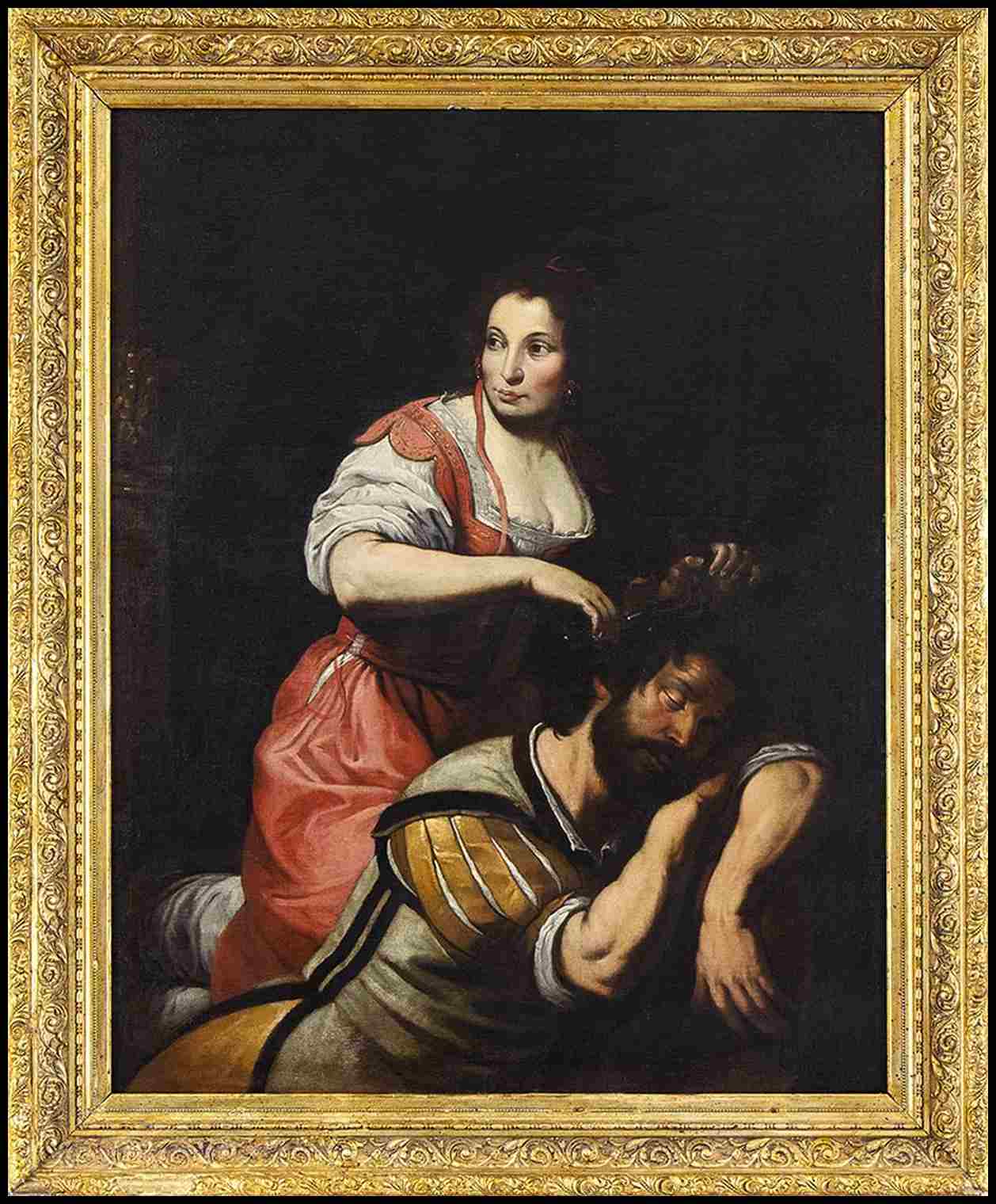 Questo bel dipinto è stato riferito senza esitazioni da Anna Orlando alla mano del genovese Gian Domenico Cappellino, artista che attende ancora un adeguato approfondimento critico complessivo, ma che fu tra i protagonisti del rinnovamento culturale genovese in senso naturalista. Il dipinto, che costituisce una significativa aggiunta nel catalogo dell’artista, ancora in costruzione, rappresenta l’episodio biblico che vede Dalila tradire il suo amante nel gesto del recidergli una ciocca di capelli, mentre furtivamente si guarda le spalle. Questo episodio è stato affrontato più volte da Cappellino, che in questo caso sceglie di isolare le due figure per focalizzare l’attenzione sull’atto che porterà al drammatico epilogo. Le figure sono trattate in chiave marcatamente caravaggesca, mostrando l'allontanamento del pittore dalla lezione del suo maestro Giovanni Battista Paggi per guardare piuttosto alla pittura di Domenico Fiasella detto il Sarzana, al quale si avvicina nel terzo decennio del Seicento.