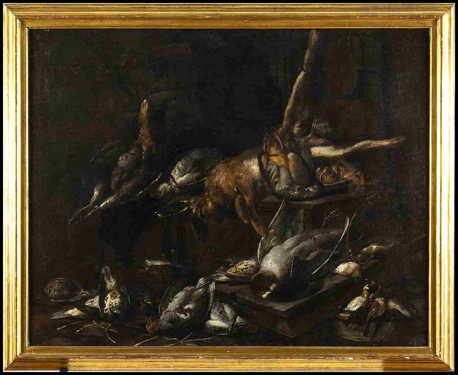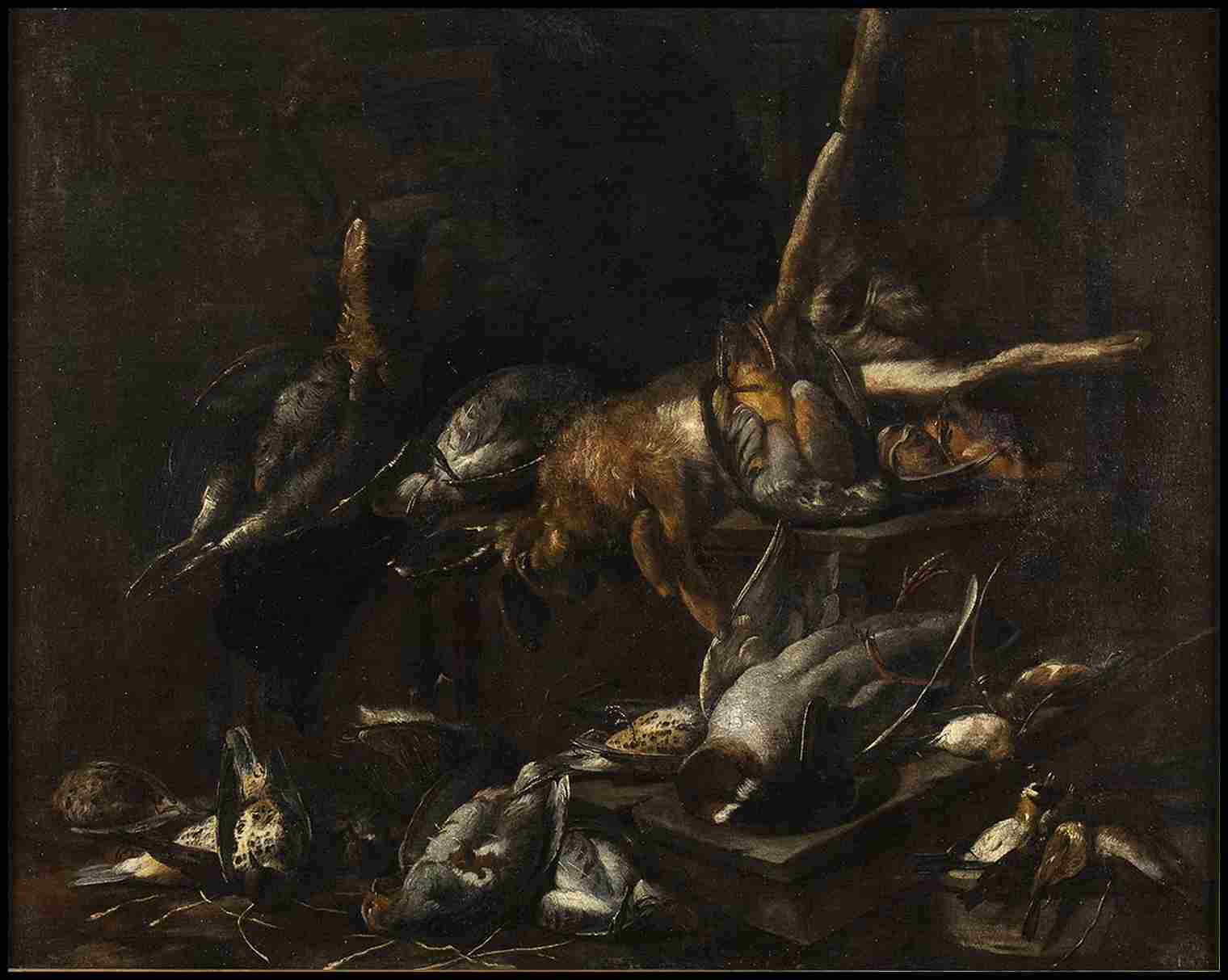 Questa bella natura morta di caccia combina un approccio analiticamente realista con una pennellata densamente pittorica. L'autore mostra qui una trama di riferimenti figurativi fiamminghi che muovono da Frans Snijders, grande animalista e padre putativo della natura morta di caccia, e dal suo allievo Jan Fijt. Dal punto di vista stilistico il nostro dipinto si apparenta con opere dello stesso genere eseguite in Italia da artisti fiamminghi specialisti nelle nature morte di caccia e con animali, quali Jacob van de Kerkhoven detto Giacomo da Castello e Johannes Hermans detto Monsù Aurora.