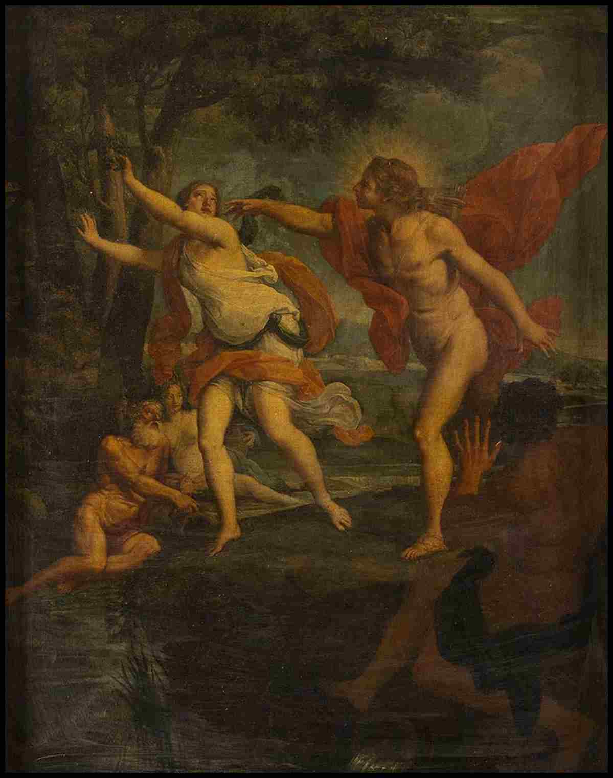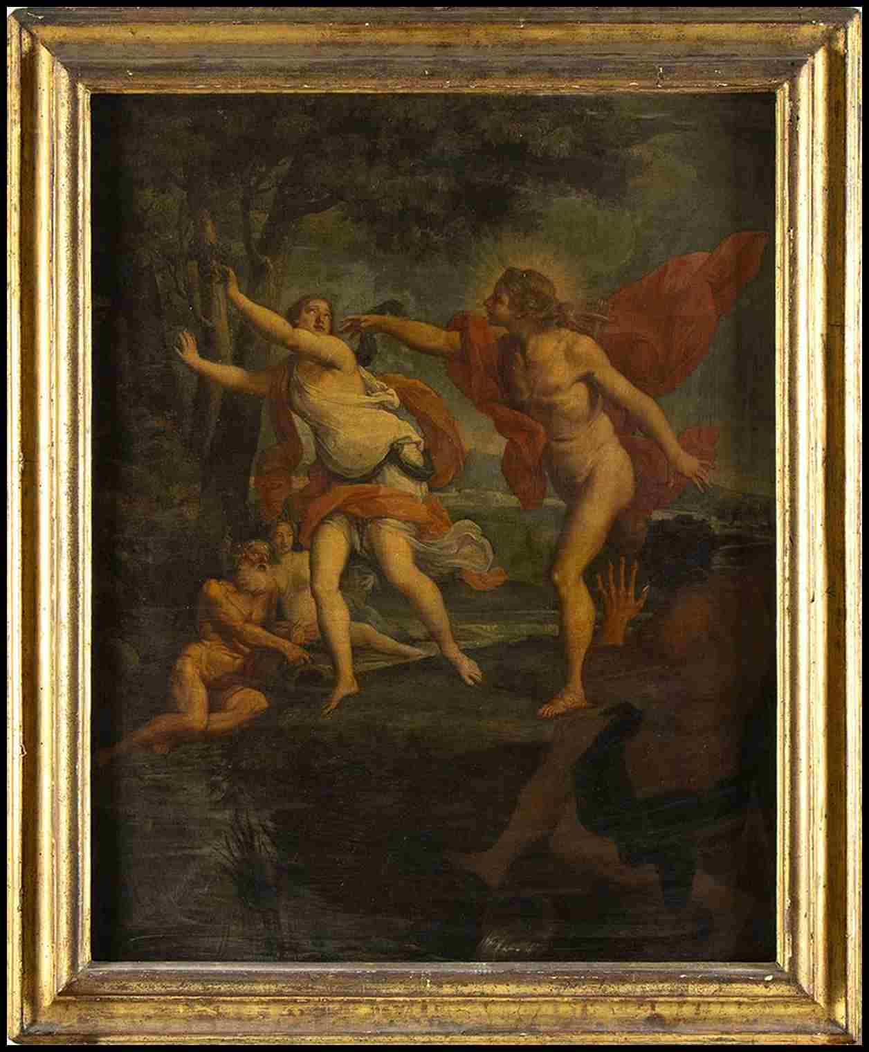 Questa notevole rappresentazione del mito narrato nelle Metamorfosi di Apuleio (fortunatissimo nella pittura e scultura barocca) parla un linguaggio pittorico prevalente bolognese, imperniato sui modelli, in primis, di Guido Reni, ma anche di Francesco Albani e Domenichino. Nella sua eleganza classicista, nella sua paletta cromatica luminosa, calda e dorata, nel suo ben ponderato plasticismo, l’autore di questa tela mostra anche uno studio attento della produzione di Nicolas Poussin. Tale profilo è compatibile con alcuni tra i migliori artisti bolognesi attivi fra secondo Seicento e primo Settecento, da Carlo Cignani a Gian Antonio Burrini, da Marcantonio Franceschini a Donato Creti. Franceschini, in particolare, sembra condividere il maggior numero di tratti avvicinabili alla nostra tela, come suggerisce il confronto con opere come Agar e Ismaele della Galleria Nazionale di Palazzo Spinola a Genova, la Morte di Abele della Pinacoteca Nazionale di Bologna e alcune delle grandi tele che il pittore eseguì tra il 690 e il 1710 per il Garten Palast della famiglia Liechtenstein di Vienna (per es. Latona e i pastori di Licia e Venere scopre Adone morto).