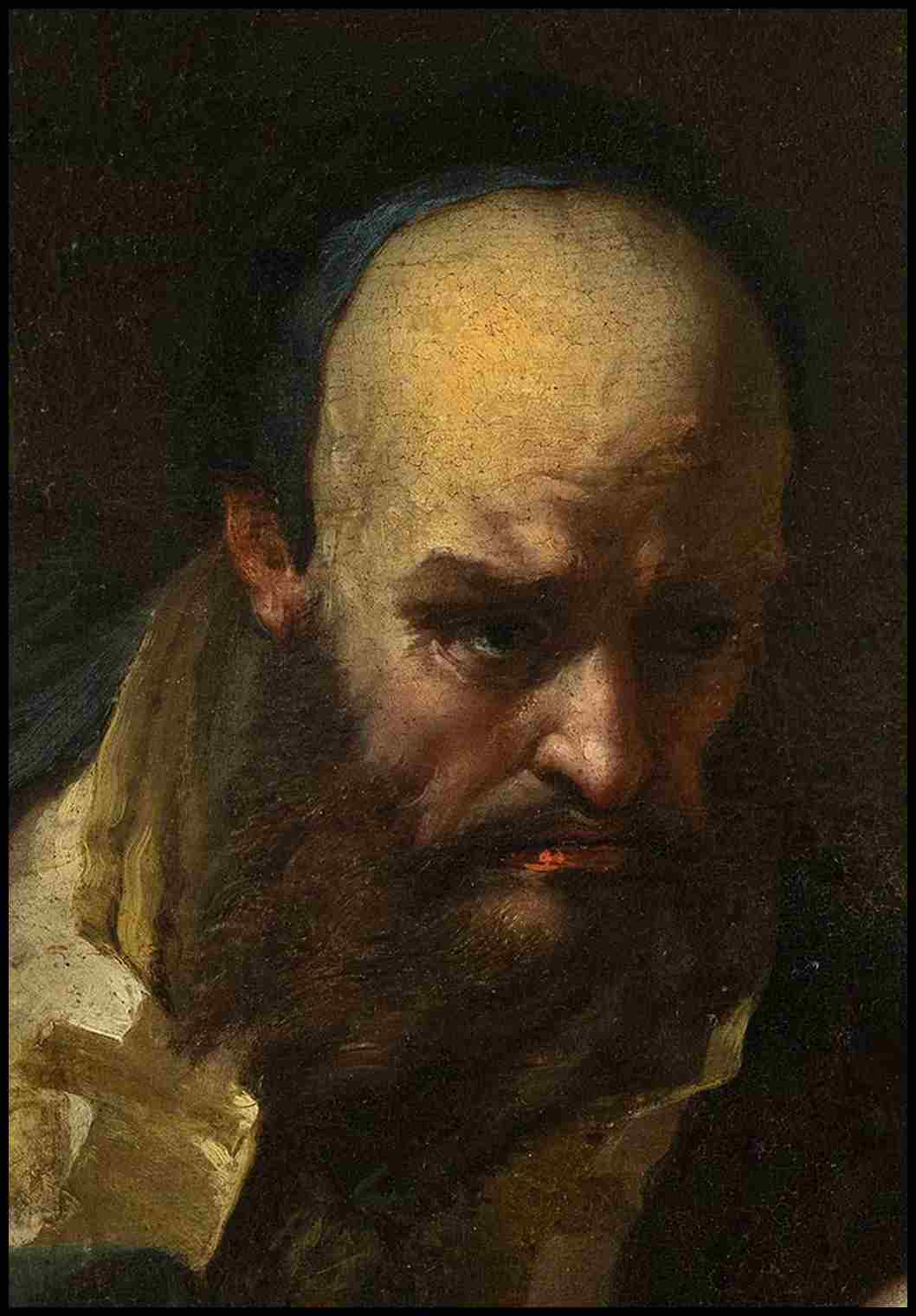 La raffigurazione è imperniata sul contrasto fra i due personaggi principali: composta, elegante, algidamente statuaria la giovane donna; sanguigno, severo, vagamente demoniaco l’uomo barbuto, punto apicale dell’influsso di Tiepolo, di cui richiama tante tipiche teste reperibili tanto nei suoi dipinti quanto nelle sue acqueforti. Il pittore veneto in cui troviamo combinati al più alto livello artistico sciolto pittoricismo tiepolesco e ben ponderato classicismo è Francesco Lorenzi (Mazzurega, Verona, 1723 – Verona 1787), che di Tiepolo fu allievo tra i più personali e brillanti. Proprio a Lorenzi si potrebbe pensare di accostare il dipinto qui in oggetto, se il suo livello qualitativo non sembrasse perfino troppo alto rispetto allo standard dell’artista veronese. Confronti di grande interesse, per le analogie tipologiche e compositive, possono essere in ogni modo istituite con alcune tra le sue opere più felici come l’Incontro tra Antonio e Cleopatra e la Scena di sacrificio, entrambe conservate in collezioni private, o ancora la Rebecca al pozzo o il Banchetto di Ester, già Milano, collezione Cesare Jacini.