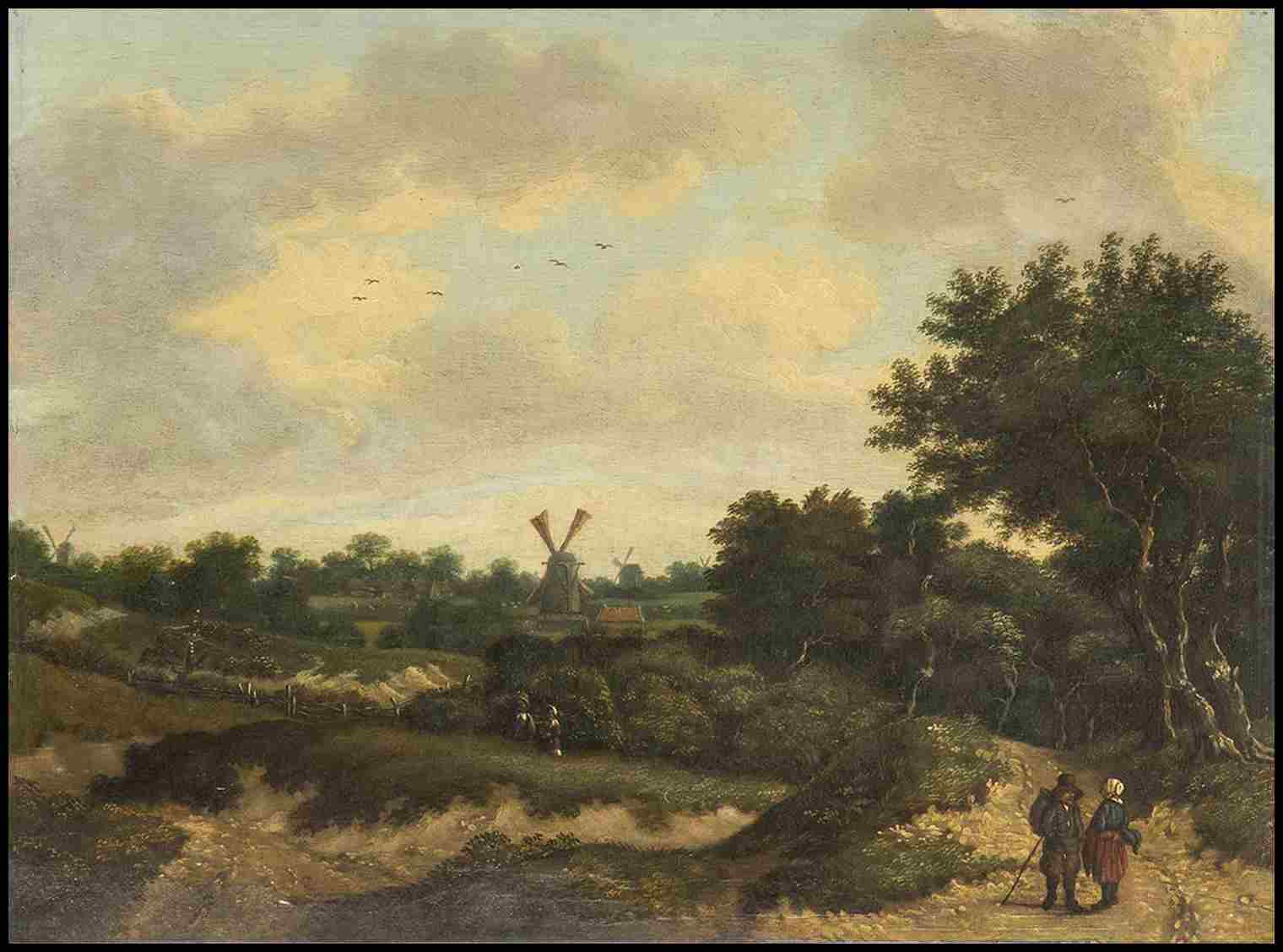 Paesaggio con contadini e mulini a vento