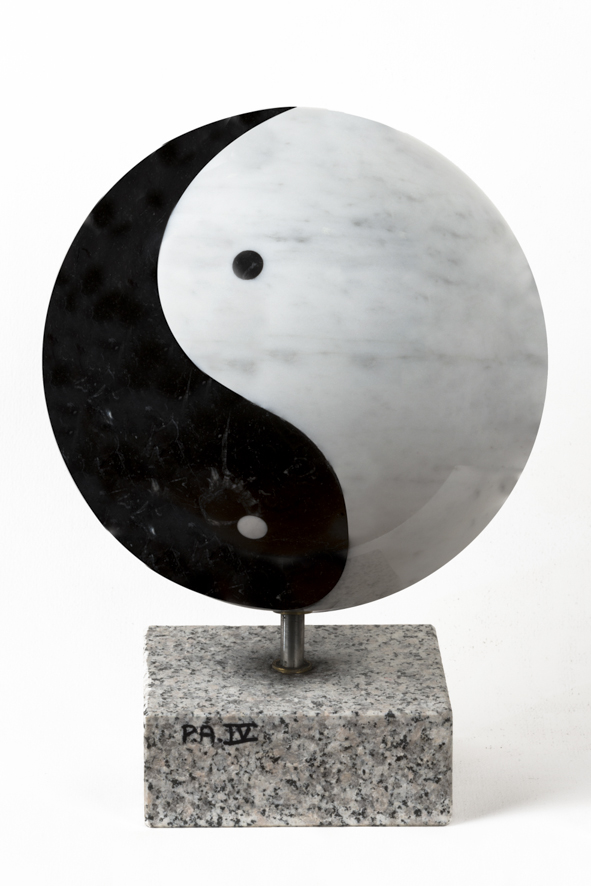 Rotella Mimmo Catanzaro 1918 - Milano 2006 Mistero - 1997 Scultura in marmo di Carrara con base in granito di Sardegna Ø 26 cm Esemplare n° P.A. IV Firma e data sul contenitore in legno dell'opera
