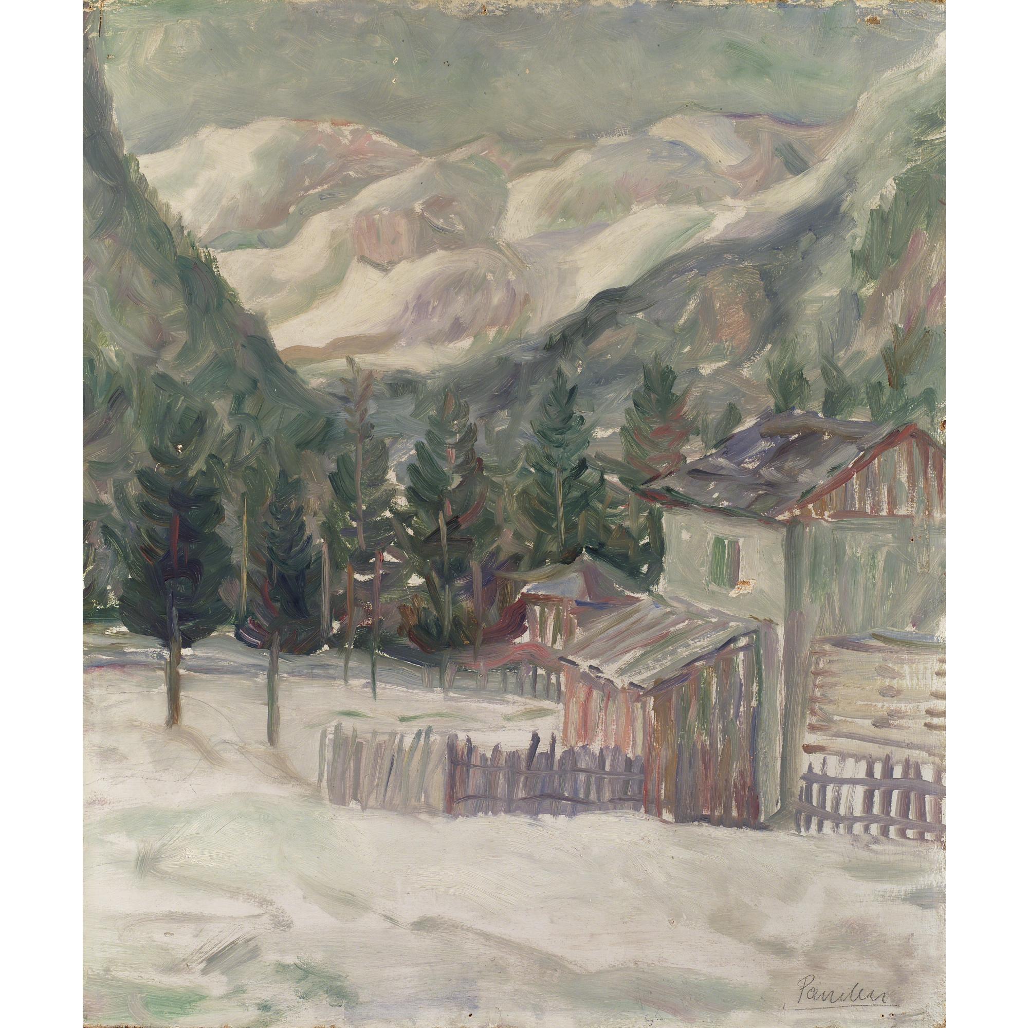 PANCHERI GINO PAESAGGIO A CANAZEI CM 68X48 OLIO SU PANFORTE (PUBBLICATO CATALOGO A CURA NICOLETTI)