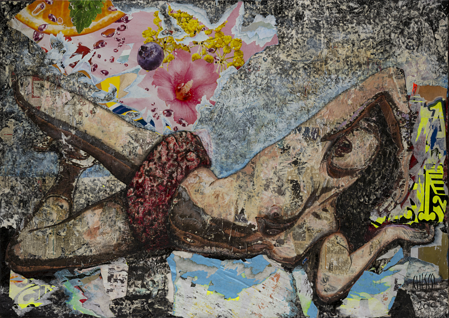Chisesi Andrea Roma 1972 Donna sdraiata - 2010 Tecnica mista e collage su tela 100 x 70 cm Firmato in basso a destra Autentica dell'artista su foto