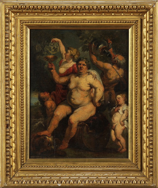 ARTISTA FIAMMINGO DEL XVIII SECOLO Bacco. Olio su tela . Cm 26,50 x 33,00. ....