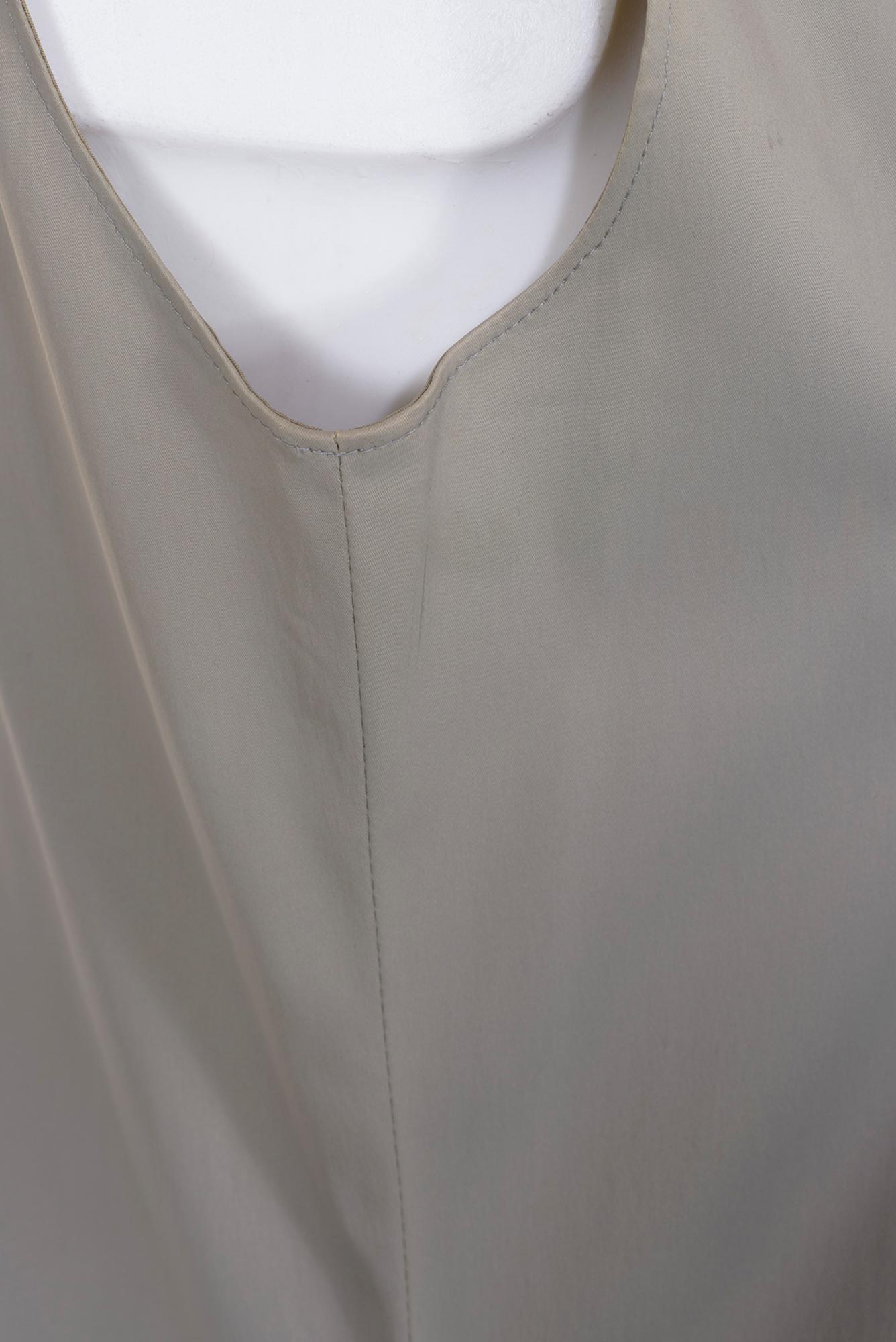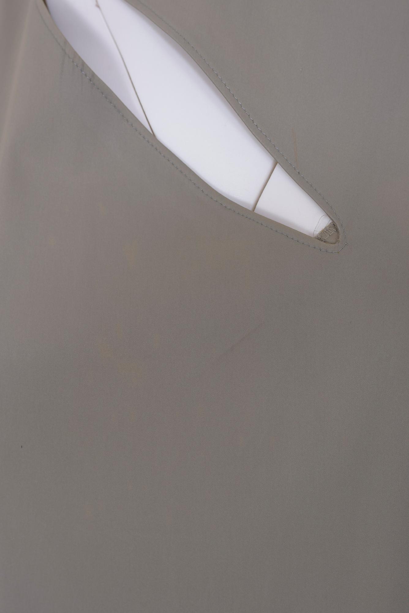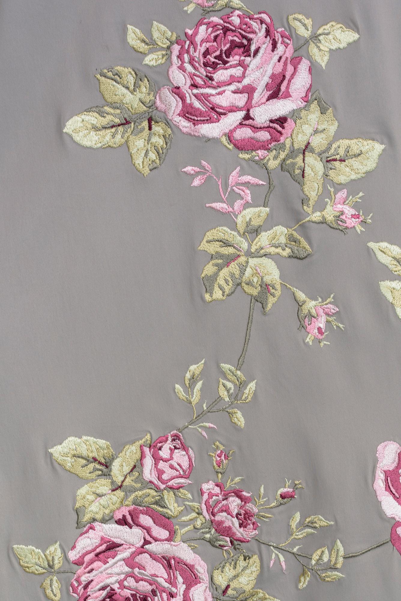 Sleeveless dress with flower embroideries from FW 97 'It's a jungle out there' collection, light grey with pink flowers, cut out at front neckline, side zip and slit at back.
