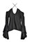 Off shoulders black blouse from SS 02 'The dance of the twisted bull' collection, crossed strings at neck and open back, ruffled sleeves.