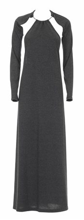 Abito in jersey a portafoglio con girocollo in metallo della collezione PE 99, maniche staccabili, schiena scoperta con chiusura a due bottoni sul retro. Taglia M.