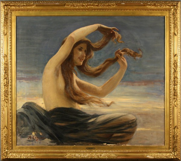Firmato. Esemplare: 30 di 30. CAGNONI AMERINO - Milano, 1855-1923. Partecipò a numerose esposizioni e ottenne molti premi. Sue opere sono custodite nella Galleria d'Arte Moderna di Milano e nella Raccolta dell'Ospedale Maggiore di Milano. Dipinto olio su tela raff. ''MODELLA''. Firmato in basso a sinistra. In cornice. Difetti. Mis. Lung. cm. 96 Alt. cm. 82 ca.