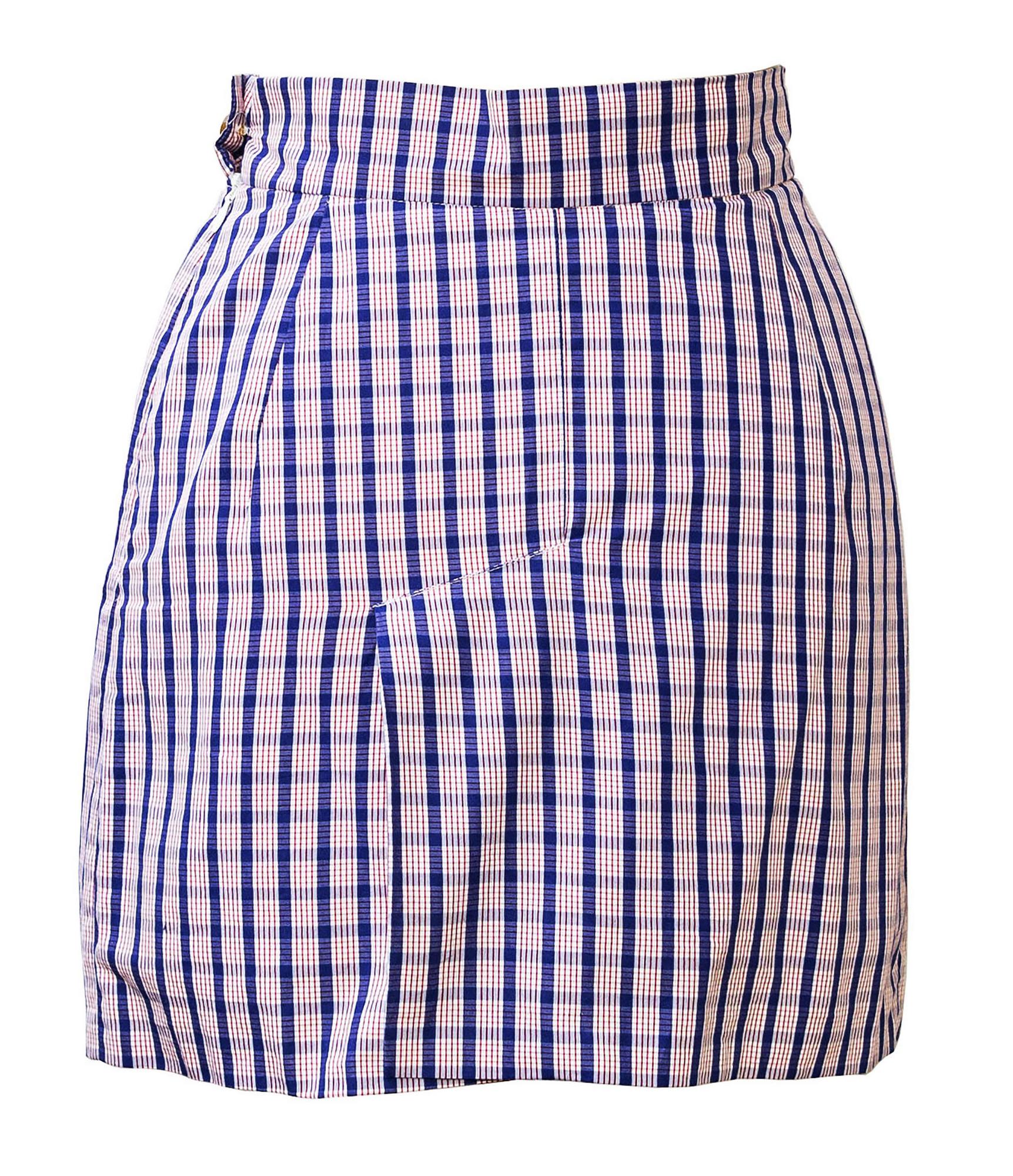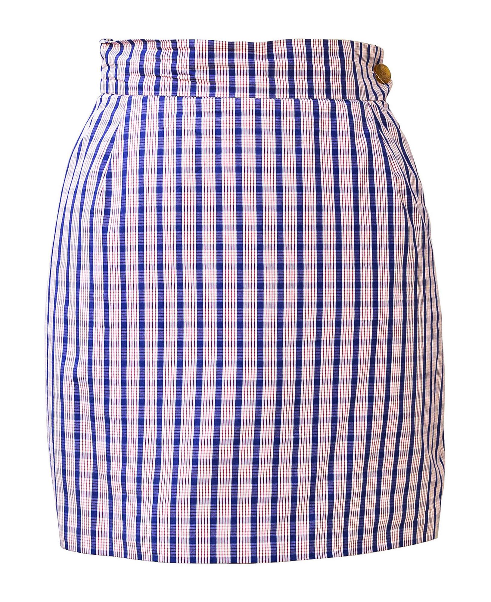 Set made up of 3 items: a jacket lined in the same fabric with 3 'Bettina' model buttons, a sleeveless shirt with a soft front and a miniskirt in shirting fabric by Thomas Mason. Made in Italy in the early 90s. Size It 42. Perfectly preserved.