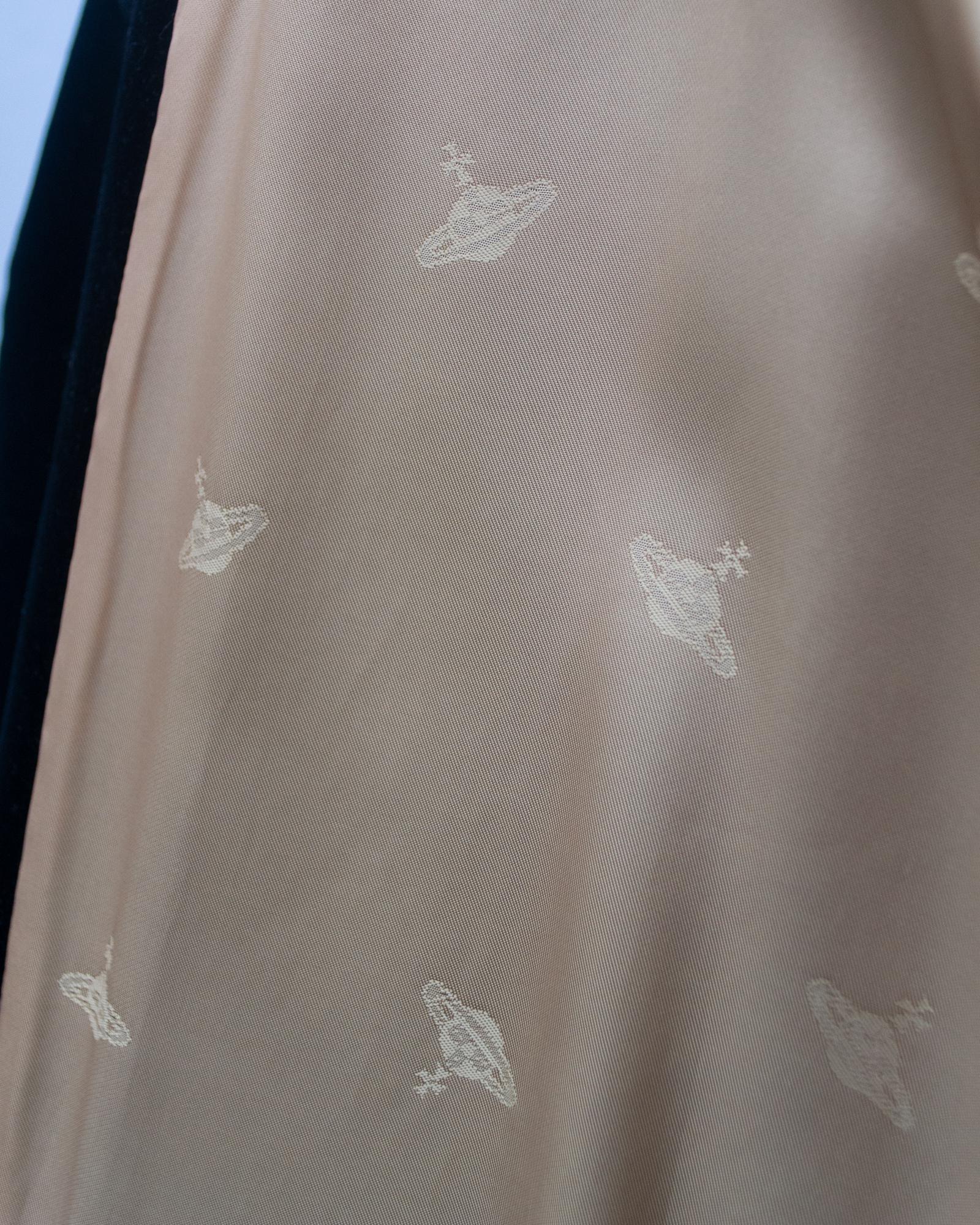 Jacquard Lined DL Jacket and made in black velvet. Giant Orb logo button, pockets with flaps. Early 90's, Made in Italy, Italian size 42. Perfectly preserved.