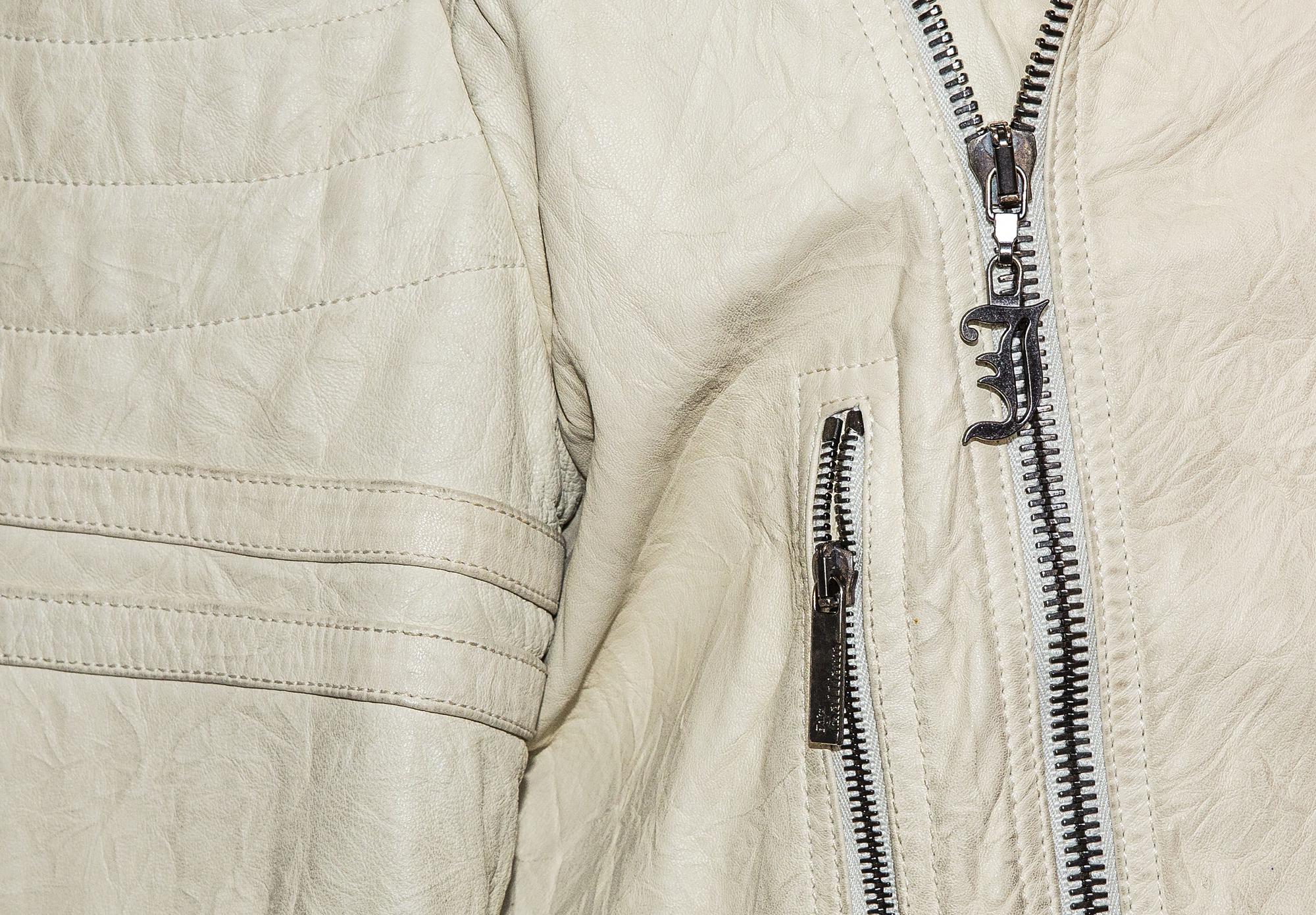 John Galliano LEATHER BIKER JACKET Description: Lined ivory nappa leather...