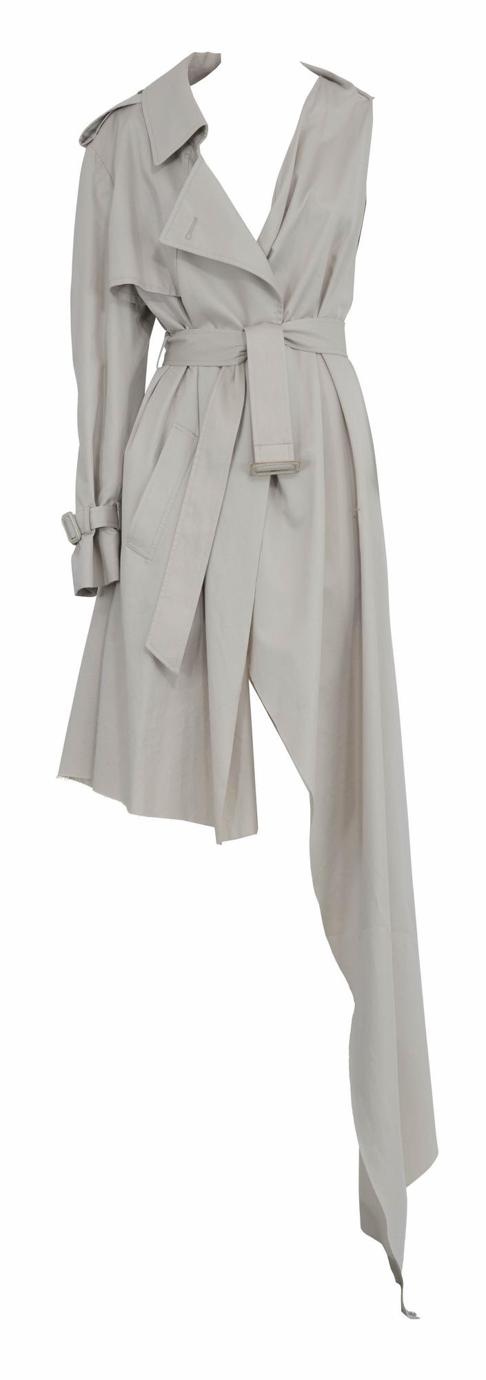 Maison Martin Margiela RARE UNFINISHED TRENCH DESCRIPTION: Rare asymmetrical,...