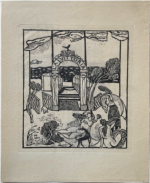 Lotto composto da cinque disegni a tecnica mista raffiguranti figure e fiori di misure diverse (misura max cm 35,5x28) e una xilografia "Bagni la Vittoria" del 1918 (foglio cm 42x33,5). Si unisce volume "Antonio Antony de Witt 1876 - 1967" ed. Artificio, 1998, Firenze (qui pubblicata xilografia a pag. 59)