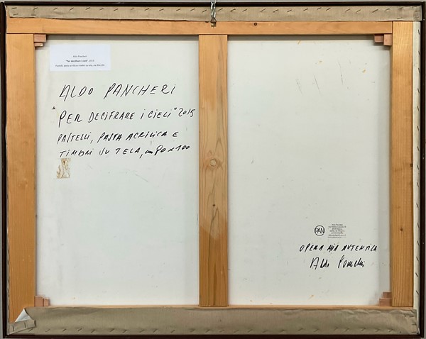 Aldo Pancheri "Per decifrare i cieli" 2015 tecnica mista su tela cm 80x100 firma