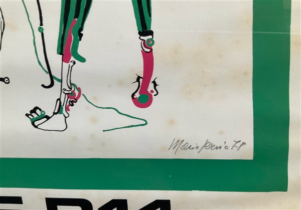 serigrafia numerata 2/65 in basso a sinistra a matita, poster firmato e datato '78 in basso a destra a matita. In cornici (difetti)