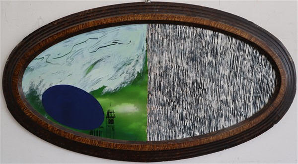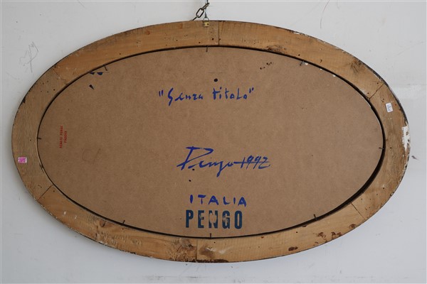 Renato Pengo "Shock" 1992 Due tecniche miste di forma ovale su compensato cm 36x