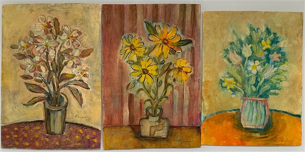 Lotto composto da tre monotipi raffiguranti vasi con fiori
